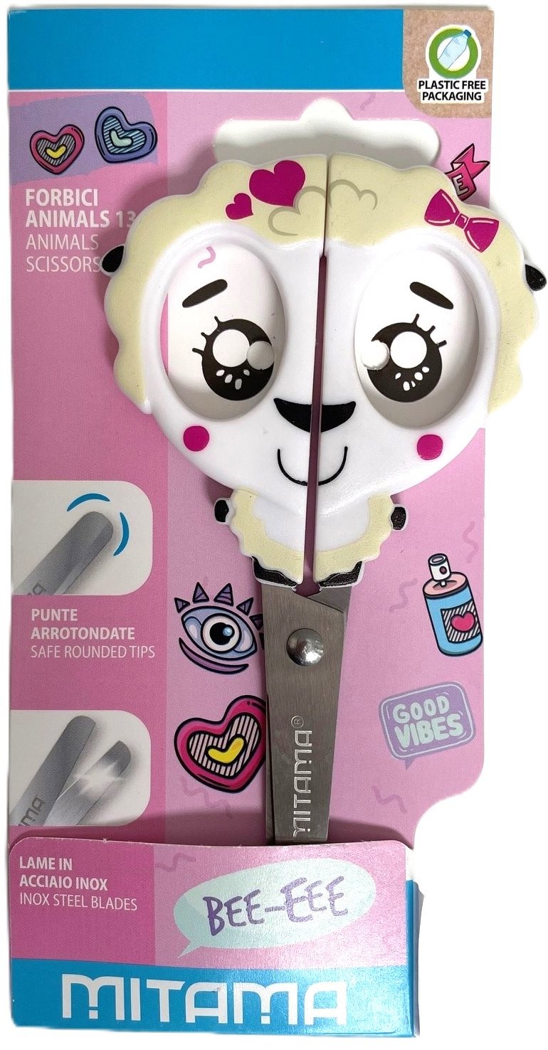 Detské nožnice – okrúhla špička, pre pravákov aj pre ľavákov, protišmyková rukoväť z plastového materiálu, materiál čepelí nehrdzavejúca oceľ Hlavné vlastnosti detských nožníc MITAMA Animal Fantasy Ovečka, 13 cm Detské nožnice Mitama sú dobrou voľbou pre pravákov aj ľavákov Rukoväť je symetrická a na príjemné držanie tiež protišmyková O poh