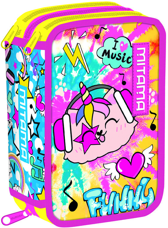 Peračník – pre dievčatá od 6 rokov, komory s pútkami vnútri, trojposchodový, vrátane vybavenia, s vystuženými stenami, rozmery 20 × 14,5 × 7,4 cm (D׊×V), modrá, ružová a žltá farba Peračník Mitama poskytne dostatok priestoru na prehľadné usporiadanie školských potrieb do troch poschodí. Chlopne s elastickými pútkami vnútri pevne fixujú ceruzky, perá i pastelky. Vystužené steny b