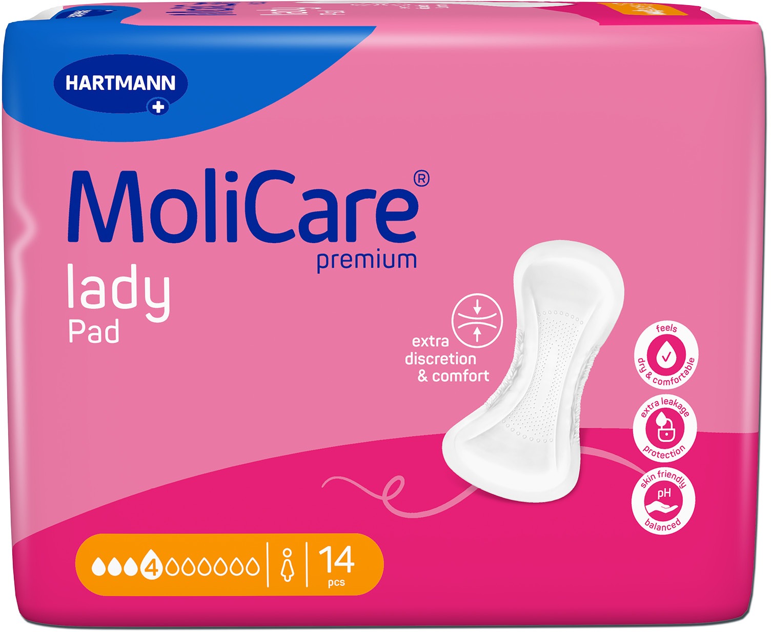 Inkontinenčné vložky – pre ženy, savosť normal, stredné ochrana, absorpcia 728 ml, s lepiacou plochou, priedušné, neutralizujúce pachy a vhodné pre citlivú pokožku, 14 ks v balení Inkontinenčné vložky pre ženy Moli. Care zaisťujú spoľahlivú ochranu…