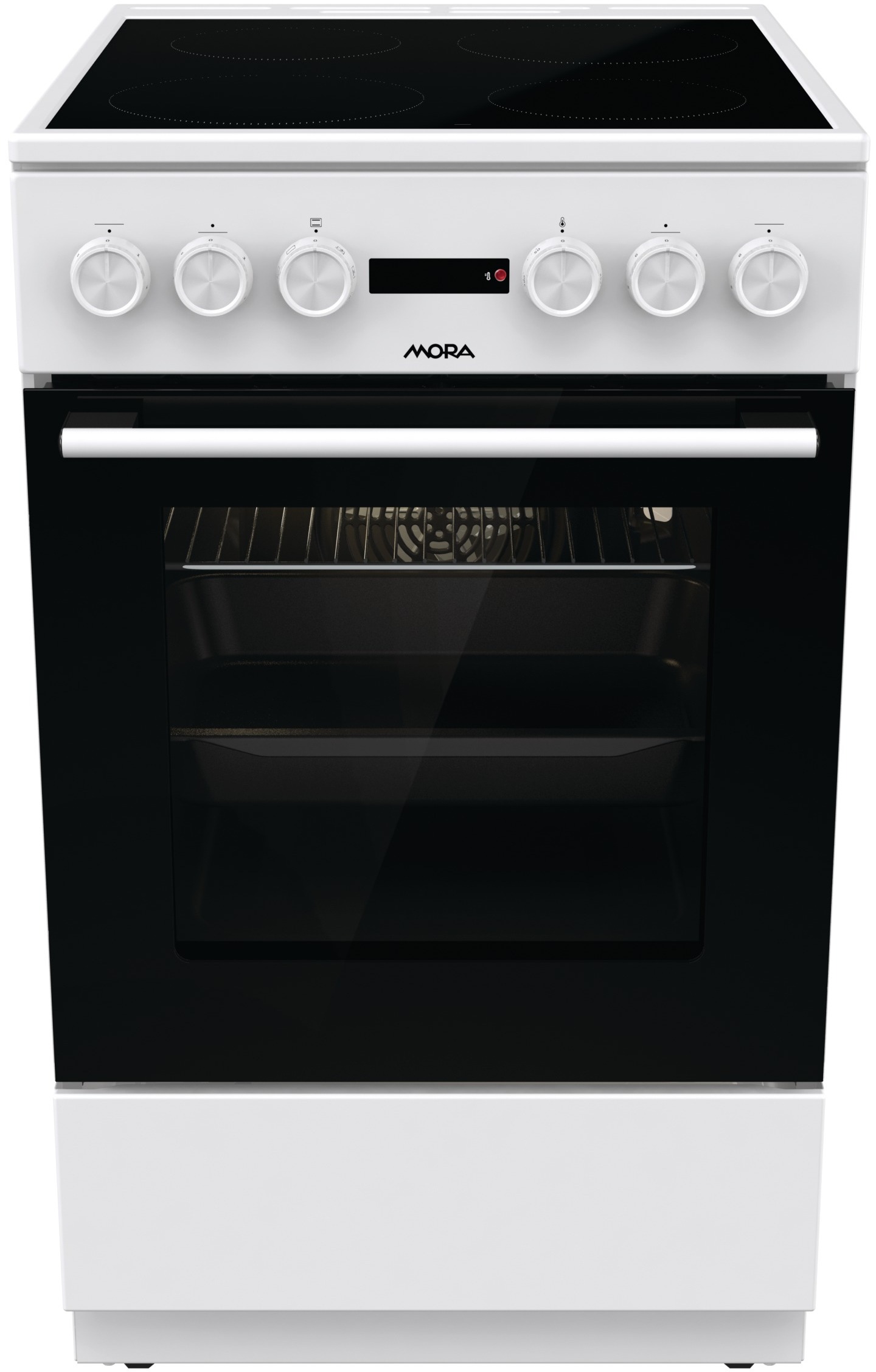 Sporák – elektrický, sklokeramická varná doska, energetická trieda A, rozmery 85 × 50 × 59,4 cm (V׊×H), 4 platničky, VARNÁ DOSKA: ukazovateľ zvyškového tepla, ovládanie pomocou otočných gombíkov, RÚRA: chladné dvierka rúry, programy rúry horný ohrev, spodný ohrev, ventilátor, pizza a pravý horúci vzduch, biela farba Select brand: Sporák so sklokeramickou varnou doskou MORA C 5242 CWSporák so sklokeramickou varnou doskou MORA vybavený prehľadnými sklenenými dvierkami s maxi priezoromKvalitné vnútorné osvetlenieRúr