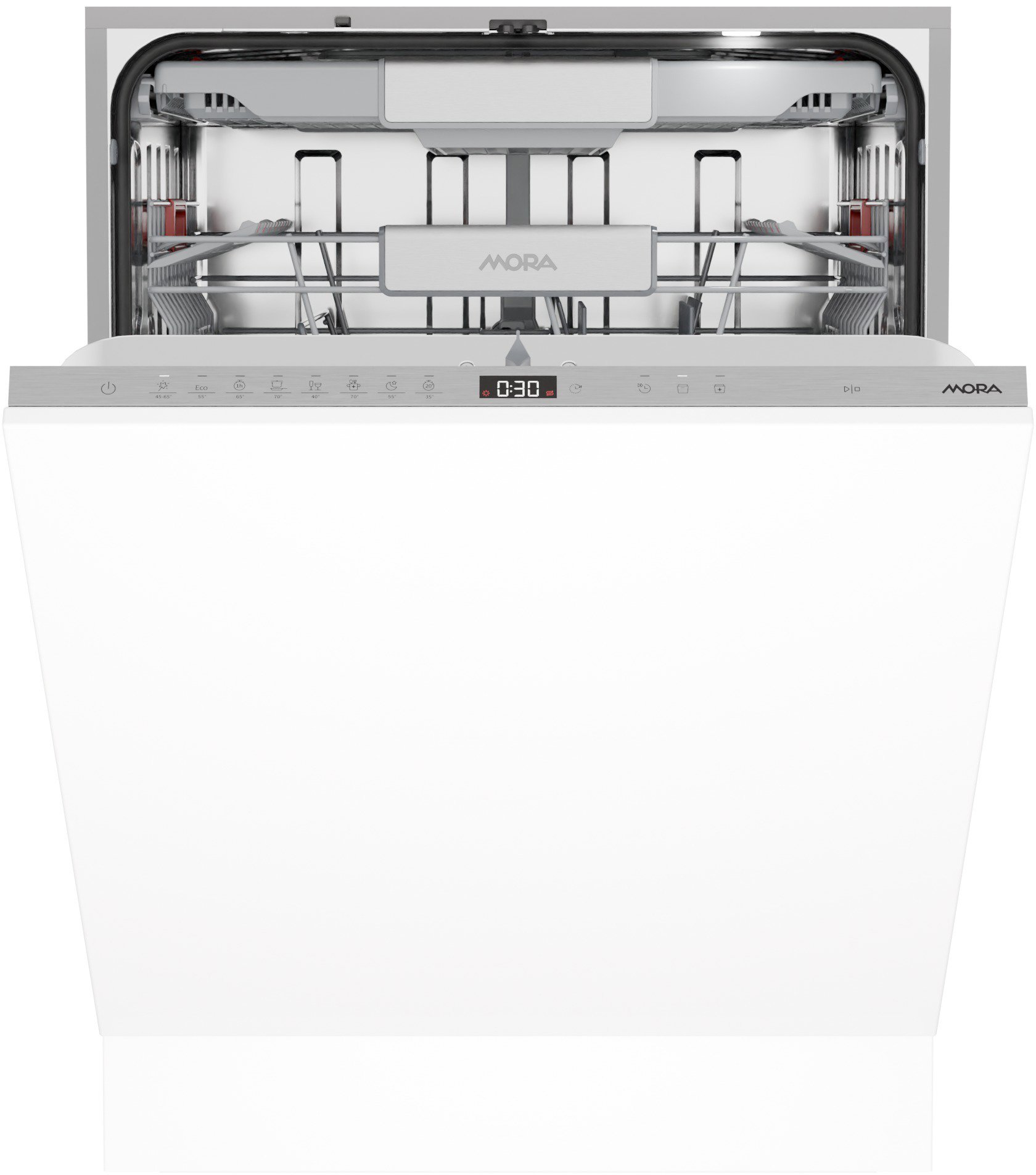 Vstavaná umývačka riadu – energetická trieda B, hlučnosť 38 dB,, AquaStop, zvukový signál ukončenia umývania a automatické otváranie dverí, ukladanie príborov do zásuvky, nastaviteľné koše na riad, rozmery 81,6 × 59,8 × 55,5 cm (V׊×H), čelný dekoratívny panel na dvierkach nie je súčasťou dodávky Vstavaná umývačka MORA IMB 6689Dajte zbohom špinavému riadu na kuchynskej linke. Vstavaná umývačka riadu MORA IMB 6689 sa postará o dokonalú čistotu vášho riadu. Ponúkne vám priestor na umiestnenie až
