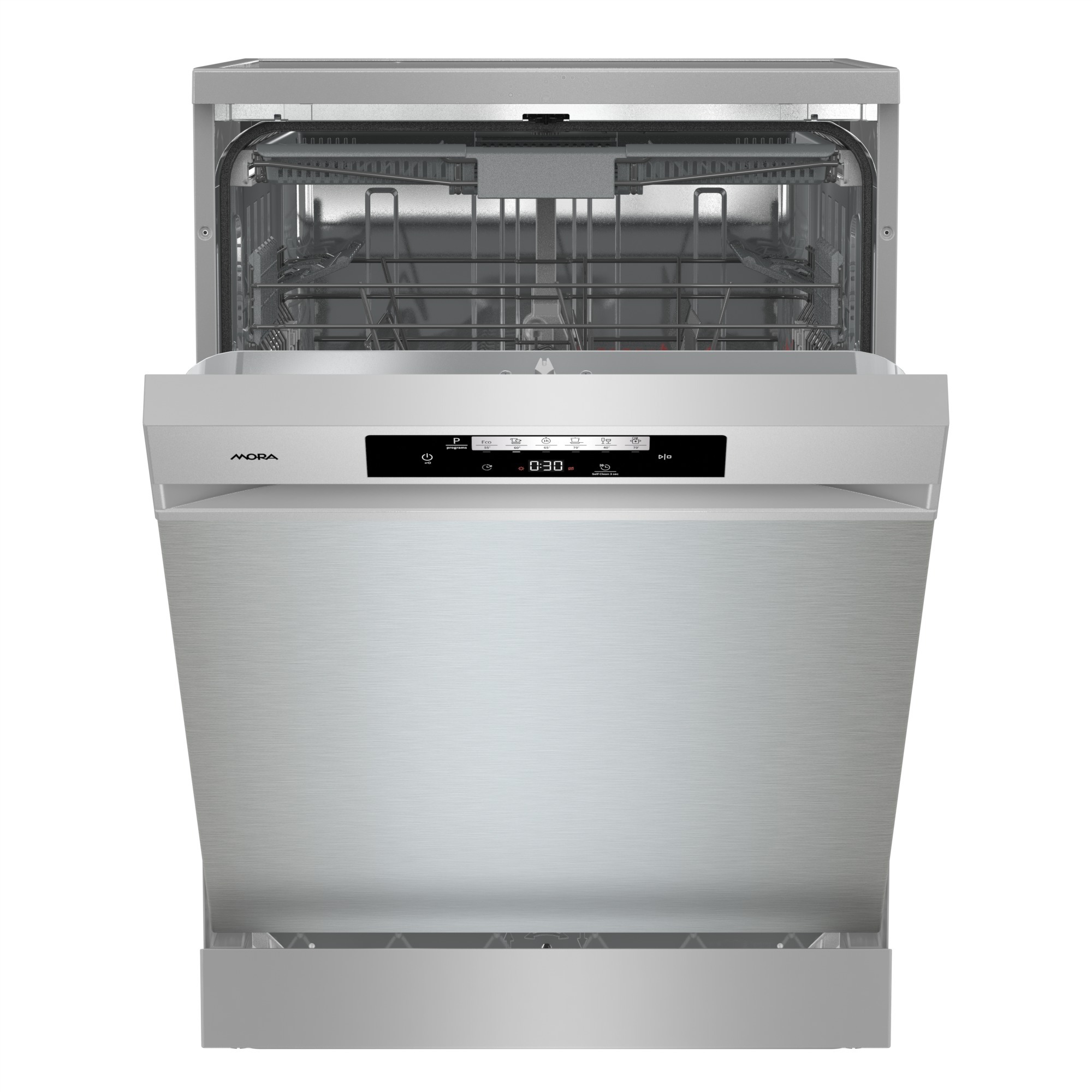 Umývačka riadu – energetická trieda E,, Aqua. Stop, nastaviteľné koše na riad, rozmery 84,5 × 59,9 × 59,7 cm (V׊×H) Umývačka MORA SM 6462 XVoľne stojaca umývačka MORA SM 6462 X v energetickej triede E, so…