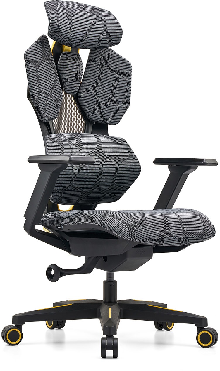Herná stolička – poťah sieťovina, synchrónna mechanika, s aretáciou, bedrová a hlavová opierka, výška, rotácia hornej časti, posun dopredu/dozadu a posun doľava/doprava podrúčky, otočná a ergonomická a plastová konštrukcia, výplň sedadla studená pena (HR pena), materiál kríža plast, plastové kolieska, čierna a žltá farba, nosnosť 200 kg VypnutéVSTÚPTE DO SVETA PERFEKTNÉHO POHODLIAHerná stolička MOSH Arkadia bola navrhnutá tak, aby ste si užili pohodlné sedenie v priebehu herných seáns alebo pri práci na počítači. Stolička vyniká skve