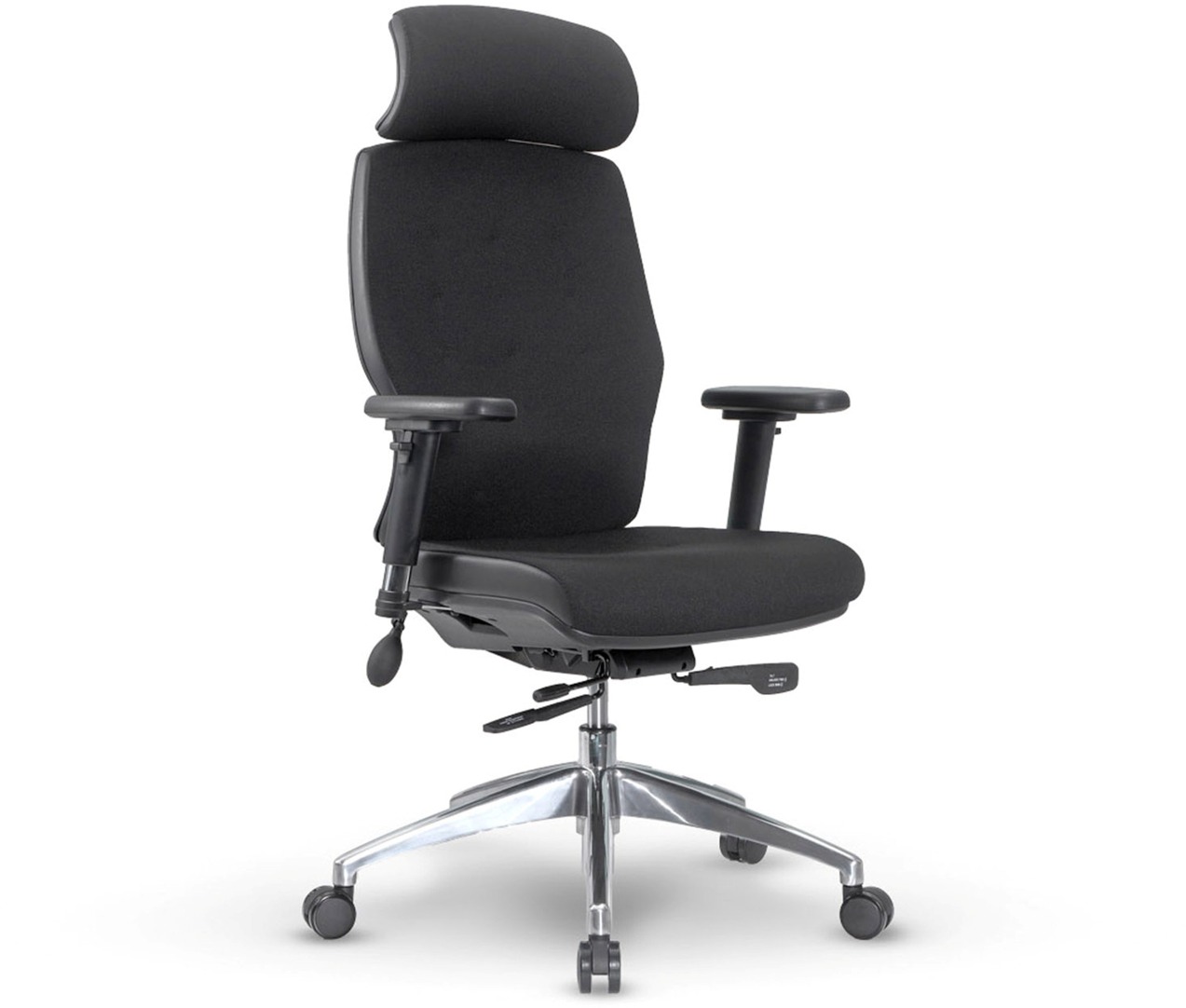 Kancelárska stolička – otočná a ergonomická, hojdacia mechanika, nosnosť 130 kg, aretácia polohy, anatomicky tvarované sedadlo s nastaviteľnou výškou, bedrová opierka s nastaviteľnou výškou, čalúnené podrúčky, podrúčky s možnosťou nastavenia posunu doľava/doprava, dopredu/dozadu, výšky, plastové…