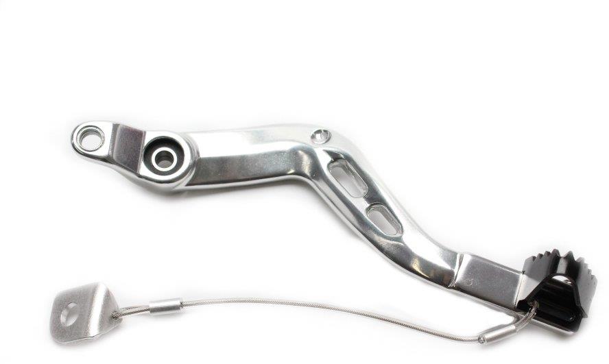 Brzdová a radiaca páka – strieborné telo, pevný hrot z čiernej ocele, pre BETA Brzdový pedál Motion Stuff 83P-0901002 je náhradný diel určený pre vybrané rady motocyklov značky Beta. Brzdový pedál neodkladne vymeňte v prípade opotrebovania, poškodenia alebo zlomenia pôvodného pe