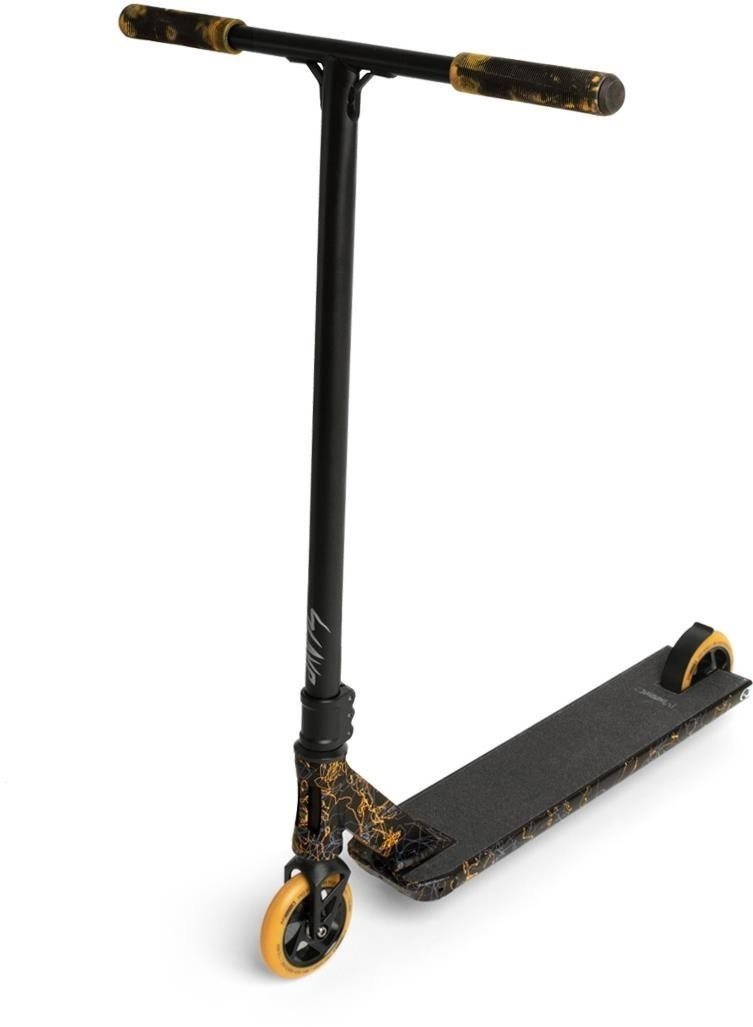 Freestyle kolobežka s nosnosťou 100 kg, materiál hliník, ložiská ABEC 9, veľkosť koliesok 110 mm, hmotnosť 4,1 kg Freestyle kolobežka Movino SLAVE Energy Blast s extra priestrannou plošinou je ideálna pre vyšších jazdcov. Veľká plošina, 64 cm dlhé riadidlá T-bar a vysoko kvalitné komponenty s IHC kompresným systé
