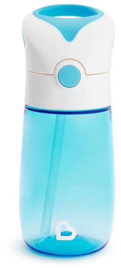 Detská fľaša na pitie – so slamkou, materiál plast a silikón, tesniace viečko, vhodná pre deti od 18 mesiacov, objem 355 ml, vhodná do umývačky, ergonomická, odolná proti nárazom, modrá a biela farba Detská fľaša na vodu Munchkin s objemom 355 ml spoľahlivo pomáha dodržiavať pitný režim. Ergonomicky tvarovaná fľaša umožňuje pohodlný úchop. Vďaka tesniacemu viečku sa nápoj nevyleje ani v prípade, ž