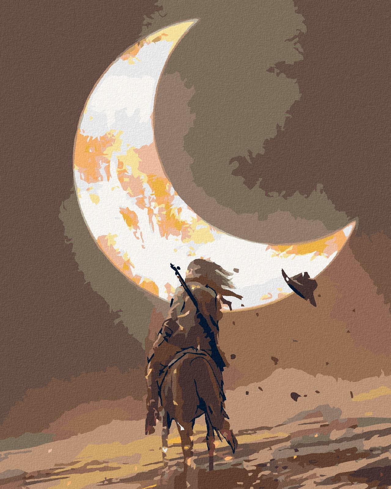 Maľovanie podľa čísel – tematika ľudia a osobnosti, veľmi ľahká náročnosť, plátno, súprava štetcov, farby a vymaľovaný vzor súčasťou balenia, rozmery 50 × 40 cm (V׊) Kľúčové vlastnosti maľovania podľa čísel Muž na koni pod mesiacom, 40×50 cm, bez rámu a bez vypnutia plátna Maľovanie podľa čísiel ocenia predovšetkým tvoriví jedinci Materiálom plátna je ľan Rozmery