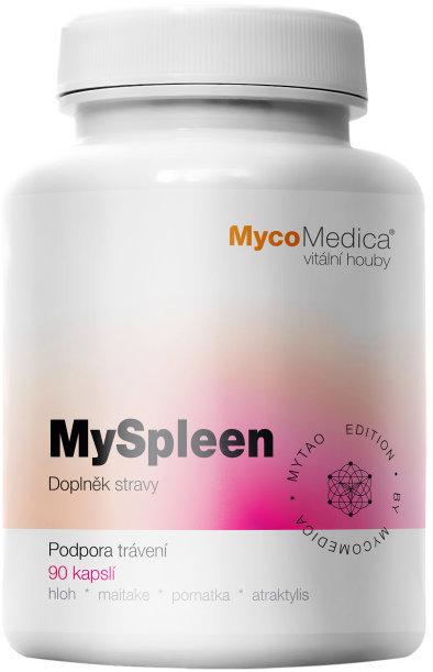 Doplnok stravy – kombinácia bylín a húb, maitake (141,7 mg), fu ling (80 mg) a shiitake (80 mg) v 1 tablete, neobsahuje kofeín, lepok, konzervačné látky, farbivá ani cukor, vegánske, v certifikovanej BIO kvalite, 90 kapsúl Mycomedica MySpleen90 kapsúlSlezina je orgán, ktorý je zodpovedný za premenu potravy na Qi a krv. Qi a krv je akýmsi palivom, ktoré náš organizmus potrebuje, aby mohol fungovať. Slezina je teda orgán