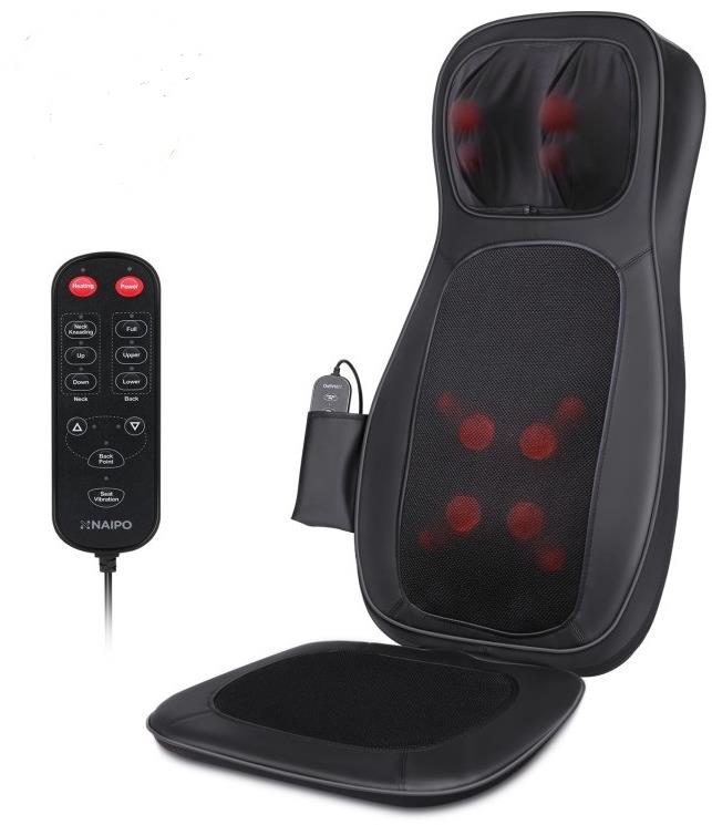 Masážna podložka – do auta a na doma, horúca terapia, shiatsu a vibračná masáž, na krk a chrbát, aj na tlmenie bolesti, relaxáciu, uvoľnenie bolesti, 3 úrovne intenzity, s časovačom, možnosť nastavenia intenzity, s vyhrievaním, ergonomický tvar, príkon 50,4 W, diaľkový ovládač a prepojovací kábel súčasťou balenia, sieťové napájanie, čierna farba, hmotnosť 5,6 kg, rozmery 80 × 41 × 46,5 cm (V׊×D) Masážna podložka Naipo predstavuje praktické a pohodlné riešenie na relaxáciu a uvoľnenie svalov. Bude rozmaznávať vaše telo, konkrétne krk a chrbát. Technika zvaná shiatsu sa zakladá na tlaku na akup