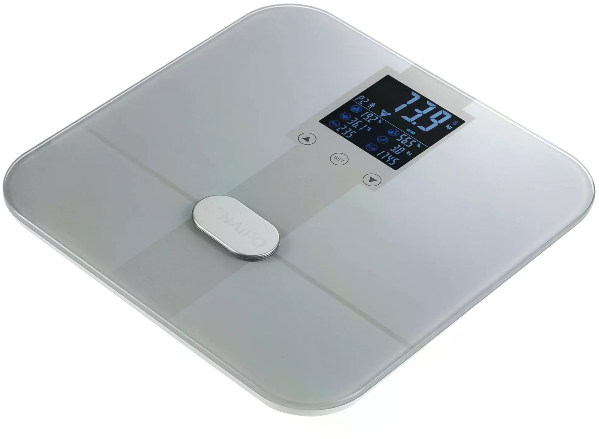Osobná váha – digitálna diagnostická, smart, nosnosť 180 kg, meranie vody, párovanie s mobilnou aplikáciou, meranie bazálneho metabolického výdaja a meranie bmi, možnosť pripojenia cez Bluetooth, materiál dosky sklo, presnosť merania 100 g, 4 senzory, kompatibilná s OS Android a iOS, na napájanie slúži AAA batéria, sivá farba Ak chcete sledovať svoju hmotnosť, či už kvôli odporúčaniu lekára, alebo svojim vlastným cieľom, určite oceníte spoľahlivého pomocníka, akým je osobná váha. Diagnostická váha Naipo ponúka komplexný pr
