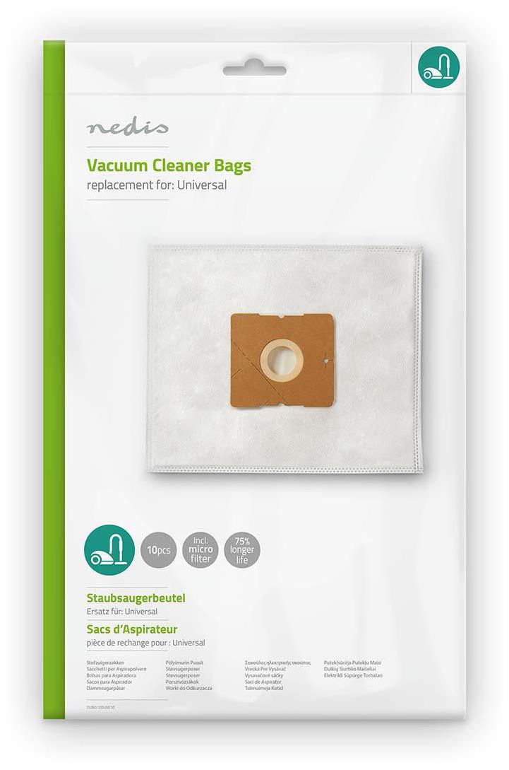 Vrecká do vysávača DAEWOO a LG – textilné, univerzálne, s automatickým uzáverom, súčasťou balenia je tiež filter, 10 vreciek v balení Kľúčové vlastnosti sáčkov do vysávača Nedis DUBG120UNE10 Sáčky do vysávača Nedis poskytujú vysávaču priestor na stály sací výkon, kým sa nezaplnia Textilné sáčok zadrží aj drobné prachové častice, tak