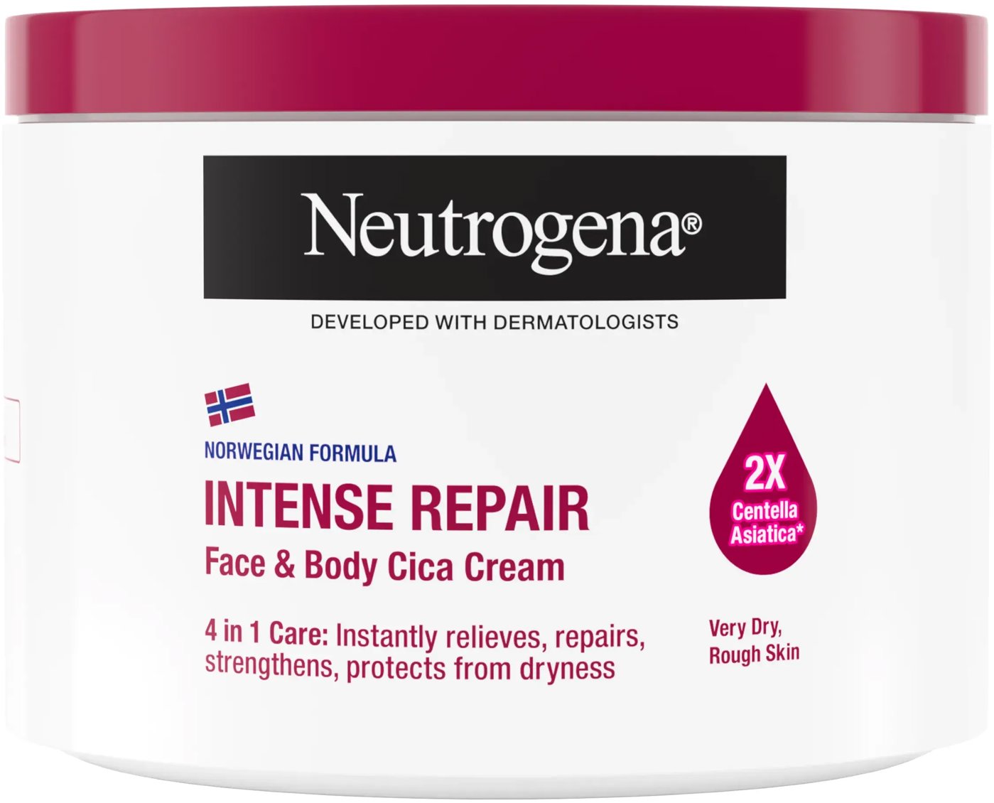 Krém , s objemom 400 ml, typ pleti: normálna a suchá Intenzívne regeneračný Cica krém NEUTROGENA na veľmi suchú a hrubú pokožku je vhodný na ruky, telo, tvár aj chodidlá. Vďaka 15 % glycerínu a dvojnásobnému množstvu Centella Asiatica, známej pre svoje