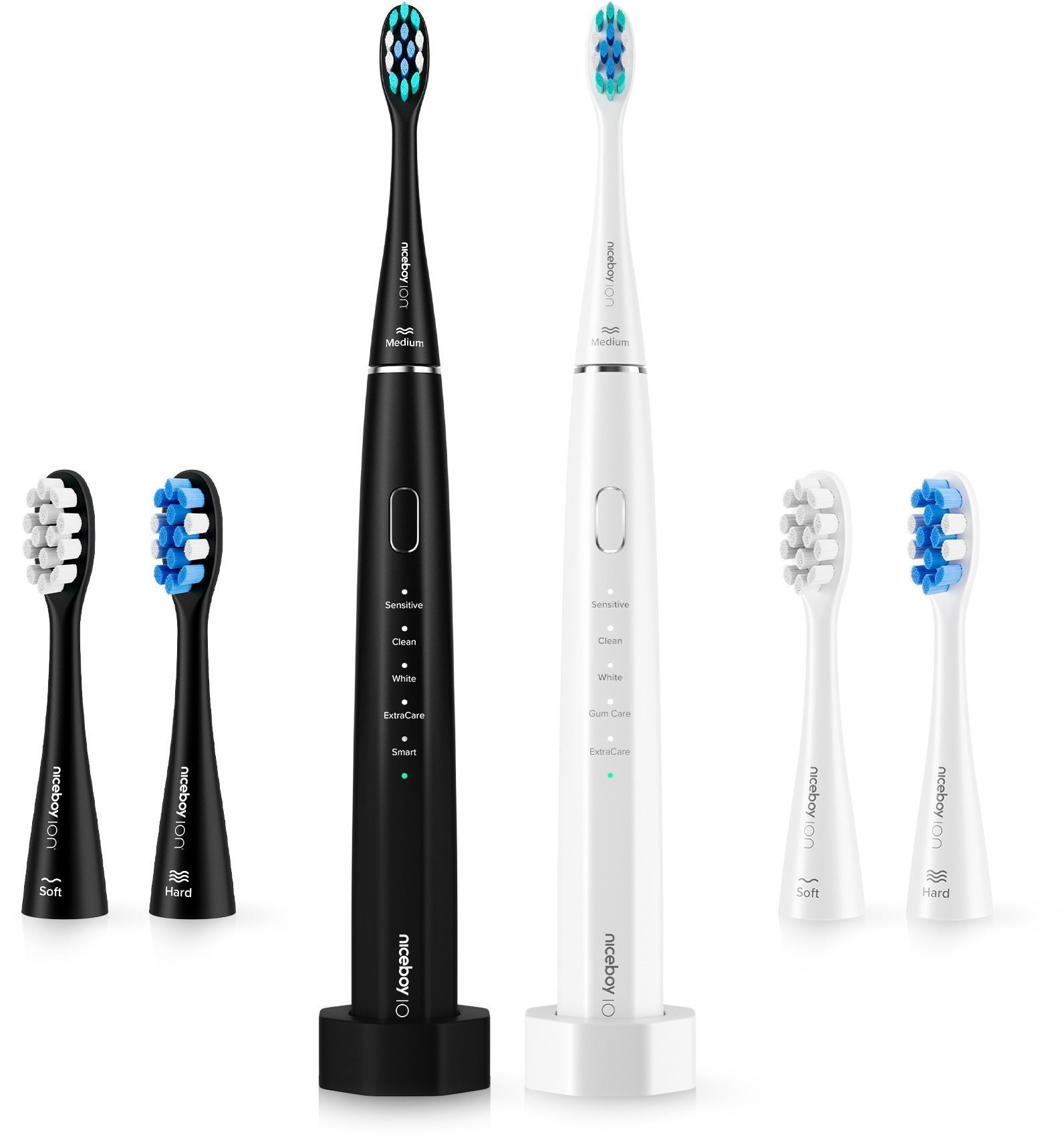 Elektrická zubná kefka – sonická, 75000 pohybov za minútu, 5 režimov, časovač, v balení 6 hlavíc, cestovné puzdro Elektrická zubná kefkaNiceboy ION Sonic DuoPackElektrická zubná kefka Niceboy ION Sonic sa stane vašim nepostrádateľným pomocníkom. Opatrená je sonickou technológiou, ktorá sa postará o šetrné a účin