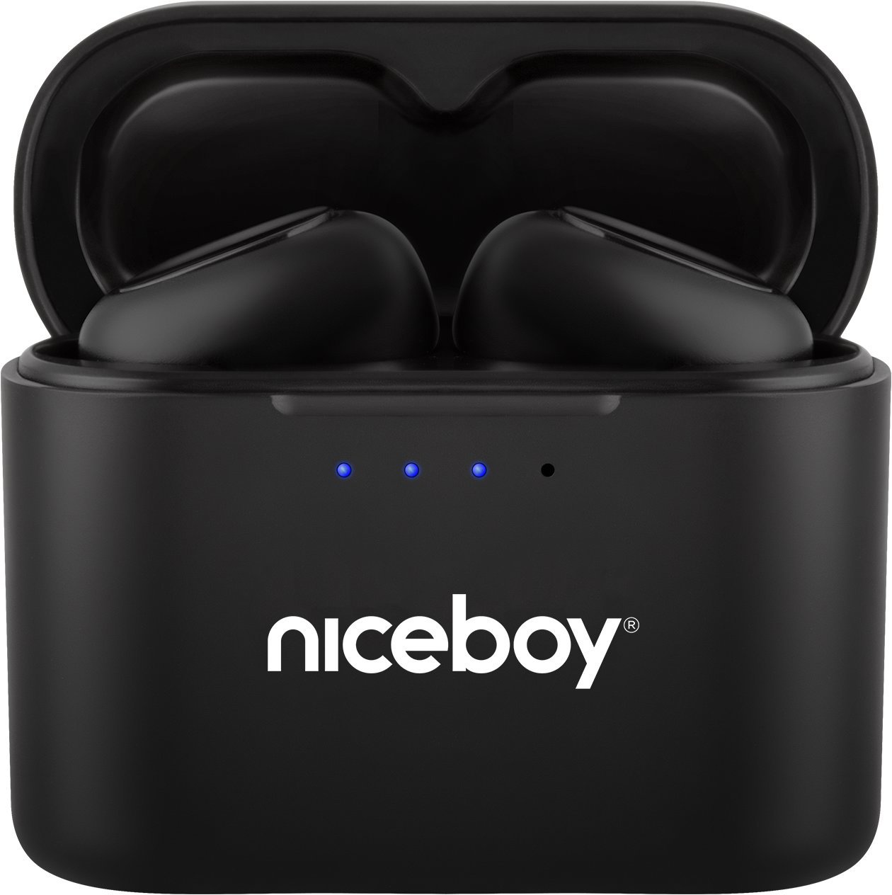 Bezdrôtové slúchadlá – s mikrofónom, True Wireless, štuple, uzatvorená konštrukcia, Bluetooth, podpora AAC a SBC, hlasový asistent, prepínanie skladieb, prijímanie hovorov, certifikácia IP54, frekvenčný rozsah 20–20000 Hz, citlivosť 110 dB/mW, impedancia 16 Ohm, menič 8 mm, výdrž batérie až 35 h (9,5 h+25,5 h) Bezdrôtové slúchadlá Niceboy Podsie 4 BlackBezdrôtové slúchadlá Niceboy Podsie 4 v čiernom vyhotovení ponúkajú True Wireless technológiu a uzavretú konštrukciu, ktorá pomáha s utlmením okolitého hluku