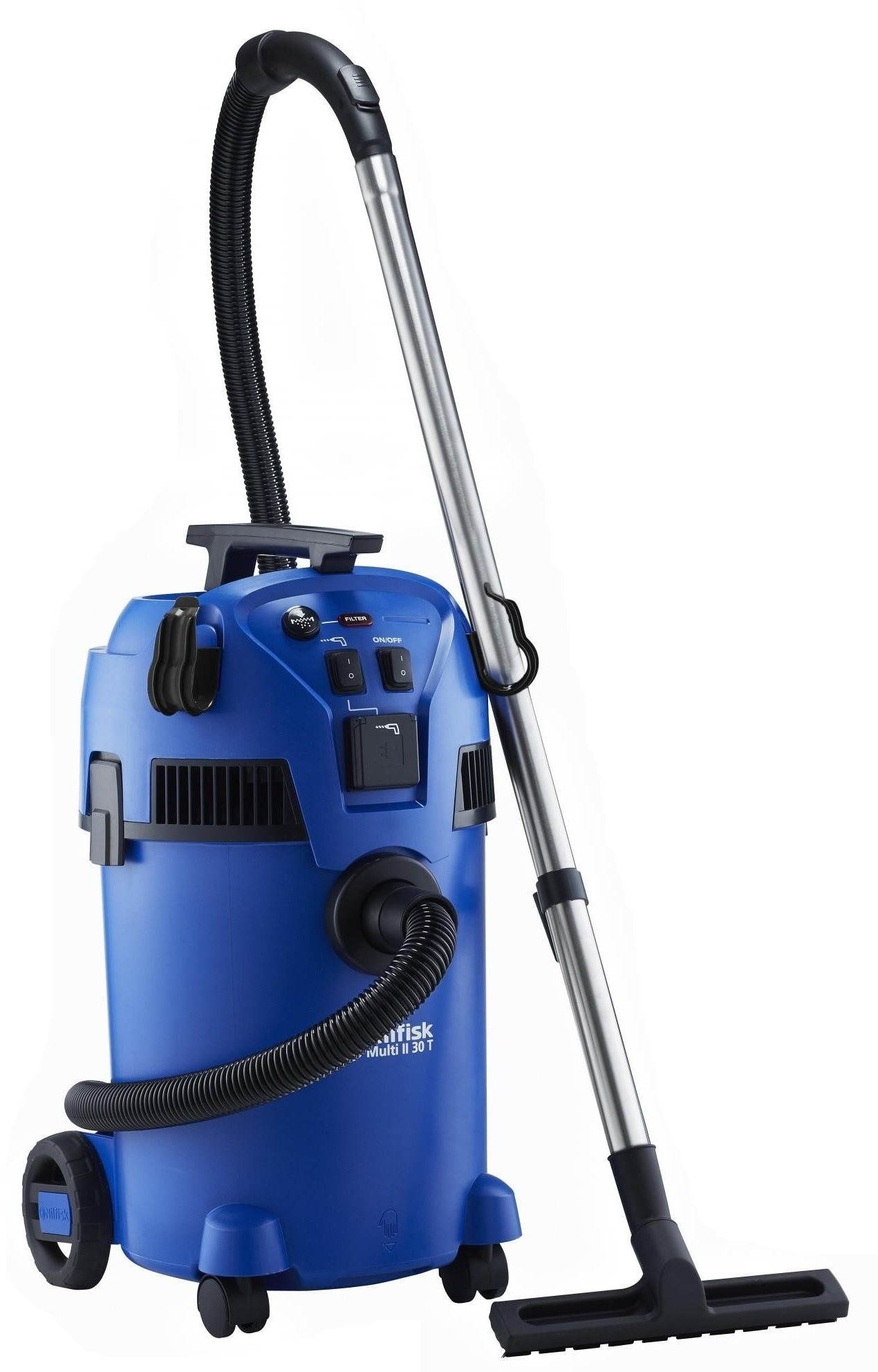 Viacúčelový vysávač – na všetky typy podláh, na vysávanie, mokré čistenie a suché čistenie, objem zbernej nádoby 30 l, regulácia výkonu a fúkanie, polyesterový, ovládanie na tele, dĺžka kábla 5 m, hadica, filter súčasťou balenia, poloautomatický oklep, s káblom, hlučnosť 87 dB, modrá farba Vysávač od spoločnosti Nilfisk, nesúci označenie MULTI II 30 T, je vhodný pre náročné úlohy v domácnosti aj dielni. S príkonom 1 400 W. Ponúka prietok vzduchu 2 500 l za minútu.Nilfisk MULTI II 30 T j