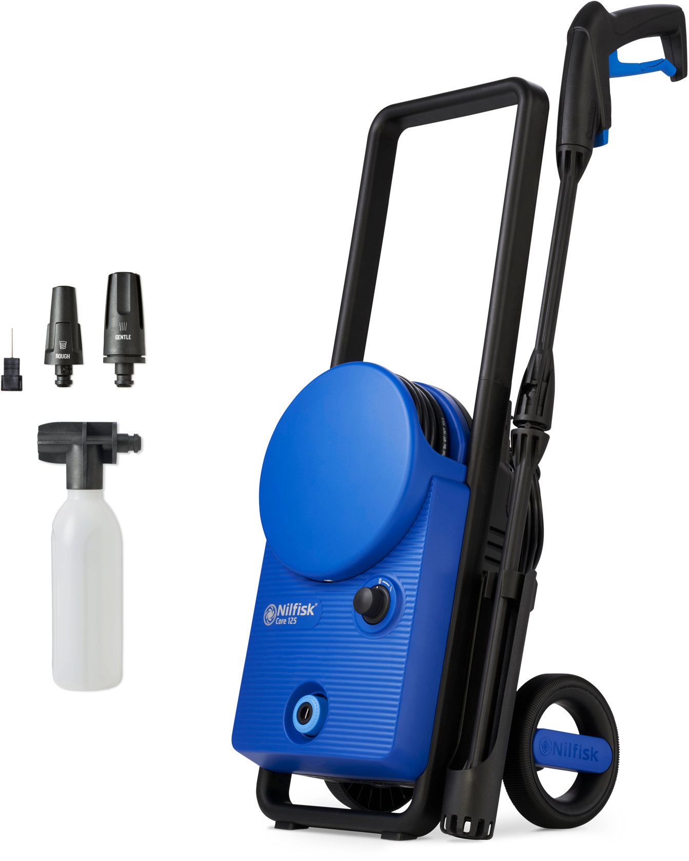 Vysokotlakový čistič – elektrický, prenosný, výkon 1400 W, max. tlak 125 bar, prietok 440 l/h, dĺžka hadice 5 m, kovové čerpadlo, vo výbave rotačná dýza, napeňovač a variabilná dýza Vysokotlakový čistič NILFISK CORE 125-5 je prenosný elektrický čistič, ktorý dokáže vyvinúť tlak až 125 barov, plošný výkon je až 35 m²/h a odporúčaná pracovná doba je až 25 minút denne. Čistič je urč