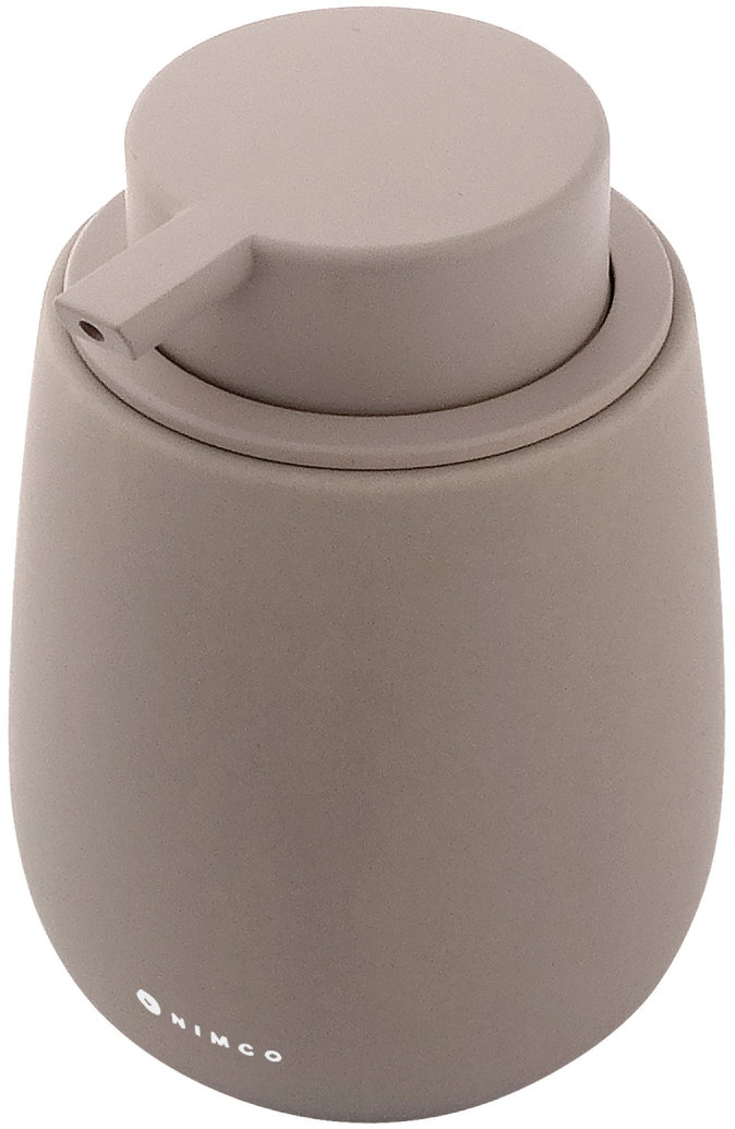Dávkovač mydla – voľne stojaci, keramická nádobka, taupe mat, pumpička plast, objem 425 ml, soft touch povrch, na postavenie na umývadlo, vhodný do domácností, kúpeľní, hotelov, verejných priestorov, odolný voči vlhkosti Potrebujete lepšie riešenie ako povaľujúce sa mydlo na umývadle? V tom prípade sa vám iste osvedčí dávkovač mydla NIMCO. Používa sa predovšetkým na tekuté mydlo, kedy oceníte jeho praktické dávkovanie