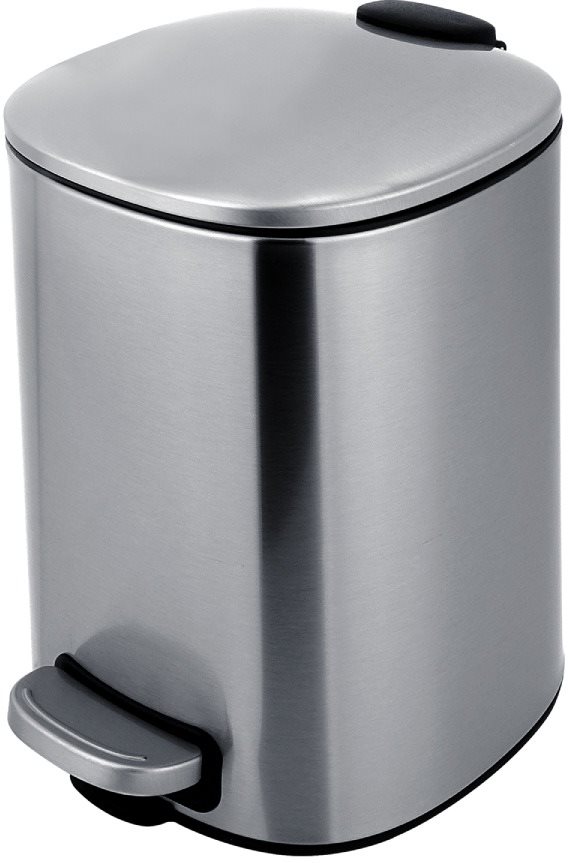 Odpadkový kôš – objem 5 l, voľne stojacia, materiál plast a nerez, strieborná farba, otváranie nohou pomocou pedála, ručné otváranie, s uchom, systém soft close, vyberateľná vnútorná nádoba, rozmery 27,5 × 20 × 25 cm…