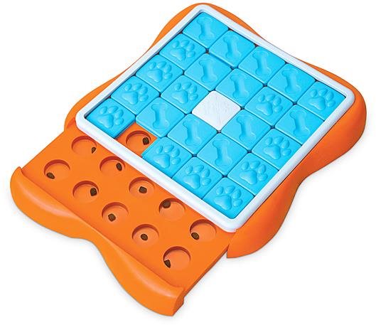 Hlavolam pre psov – pre plemená všetkých veľkostí, výcvik a rozvoj zmyslov, materiál plast, 5 × 40 × 40 cm (V׊×H) „Posúvaj a vytrvaj! 24 maškrtiek sa dlho hľadá, vysúvacie spodné poschodie pre rýchle naplnenie! Si lovec a pátrač? Tak už sa nehrab v koši, hraj sa inteligentne! Je úplne fuk, či si jazvečík