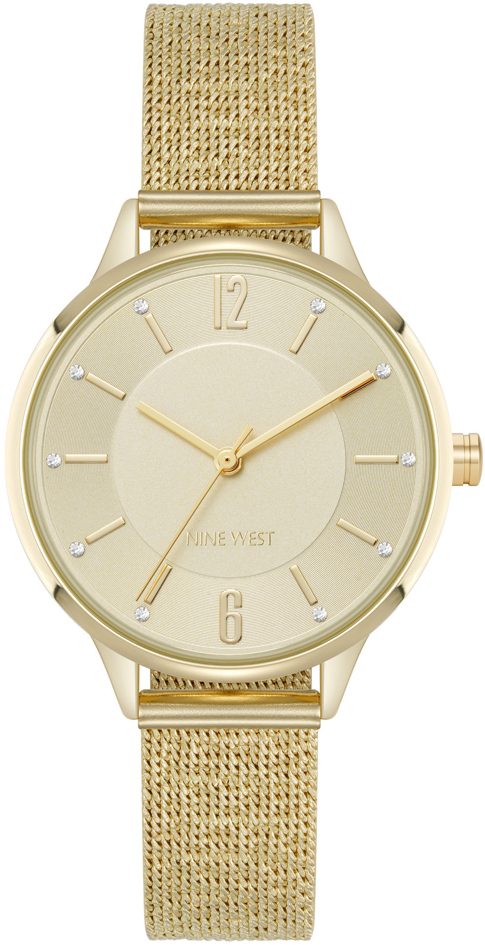 Hodinky dámske – analógové zobrazenie času, strojček quartz, okrúhly ciferník, elegantné, bez číslovania, minerálne sklíčko, vodotesnosť 30 m (3 ATM), materiál puzdra oceľ, zlatá farba puzdra, materiál remienka oceľ, zlatá farba remienka, na obvod zápästia 13 – 19 cm, vlastný typ zapojenia Nine West dámske hodinky okrúhle NW/3304CHGB sú prepracované dámske hodinky, ktoré vás nenechajú v štichu. Ich základom je okrúhly ciferník s veľkosťou 34 mm. Spoľahlivá Quartz technológia dáva istotu