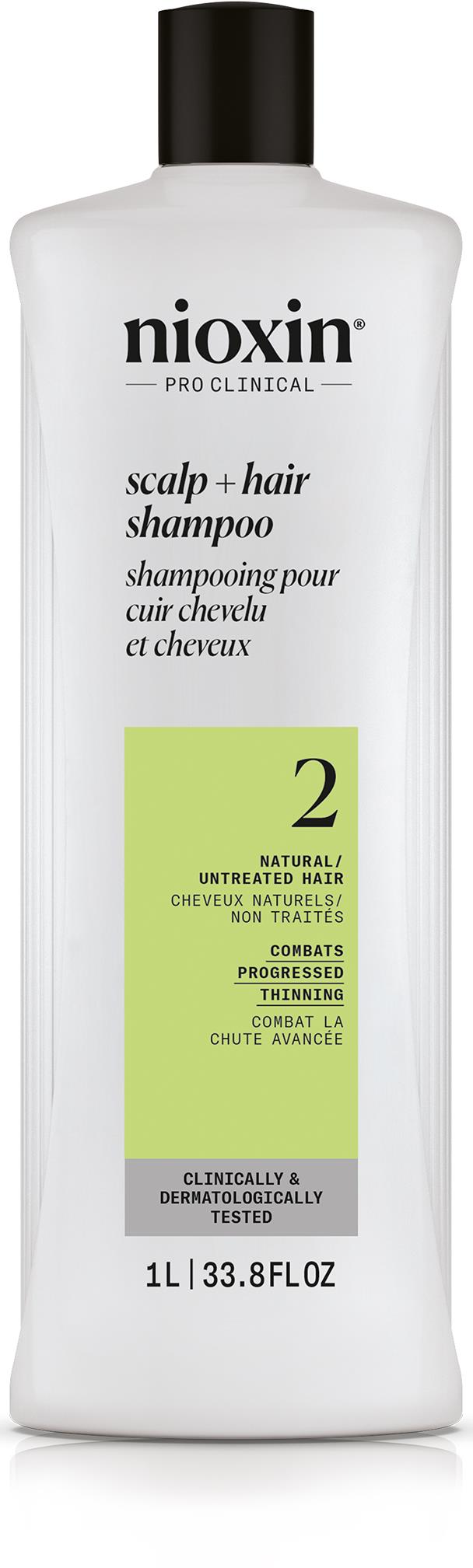 Šampón – tekutý, na slabé a rednúce vlasy, zloženie s prírodným olejom a s prírodnými zložkami, objem 1000 ml, profesionálny Šampón NIOXIN Scalp Hair Thickening System 2 oživí rednúce farbené vlasy. Vďaka šetrným a vyživujúcim vlastnostiam prípravku získajú vaše vlasy silu a objem. Šampón je určený na chemicky upravené, suc