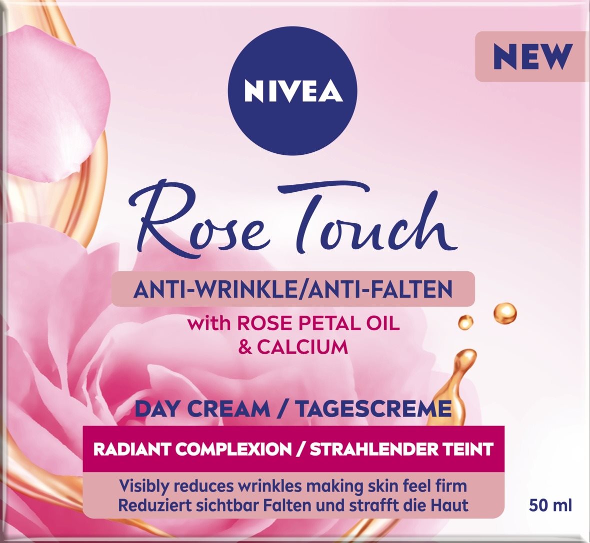 Krém na tvár – vhodný na mastnú, normálnu, zmiešanú, suchú a zrelú pleť, hydratačný, upokojujúci, rozjasňujúci a proti vráskam, pre všetky vekové kategórie Pleťový krém NIVEA Rose Touch Anti-age day care bude prvou voľbou, keď je nevyhnutné dodať vašej pleti intenzívnu a okamžitú starostlivosť. Pleťový krém je vhodný na pleť, ktorá je mastná, normálna, z