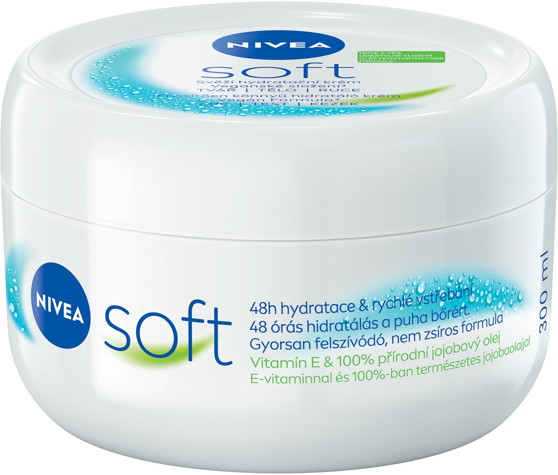 Krém na tvár – vhodný na mastnú, normálnu, zmiešanú, suchú a zrelú pleť, hydratačný, pre všetky vekové kategórie Pleťový krém NIVEA Soft je kozmetický prípravok, ktorý zaisťuje jedinečnú výživnú starostlivosť, hydratáciu a ochranu pre vašu pleť počas dňa. Krém má veľmi jemnú textúru, ktorá sa dobre nanáša a ľahk
