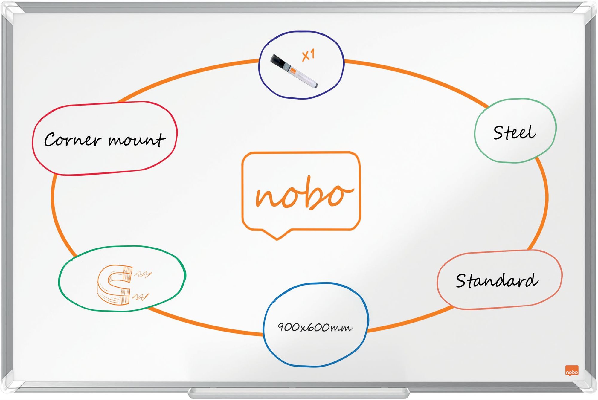 Magnetická tabuľa s lakovaným povrchom, na písanie popisovačom, hliníkový rám, držiak na písacie potreby, v balení popisovač, montážna súprava, rozmer 594 mm × 903 mm × 17 mm (V׊×H) Kľúčová značka v oblasti vizuálnej komunikácie v celej EurópeMagnetická tabuľa Nobo Premium PlusPopustite fantáziu a zaznamenajte si všetky nápady na magnetickú tabuľu Nobo Premium Plus. Oceľový