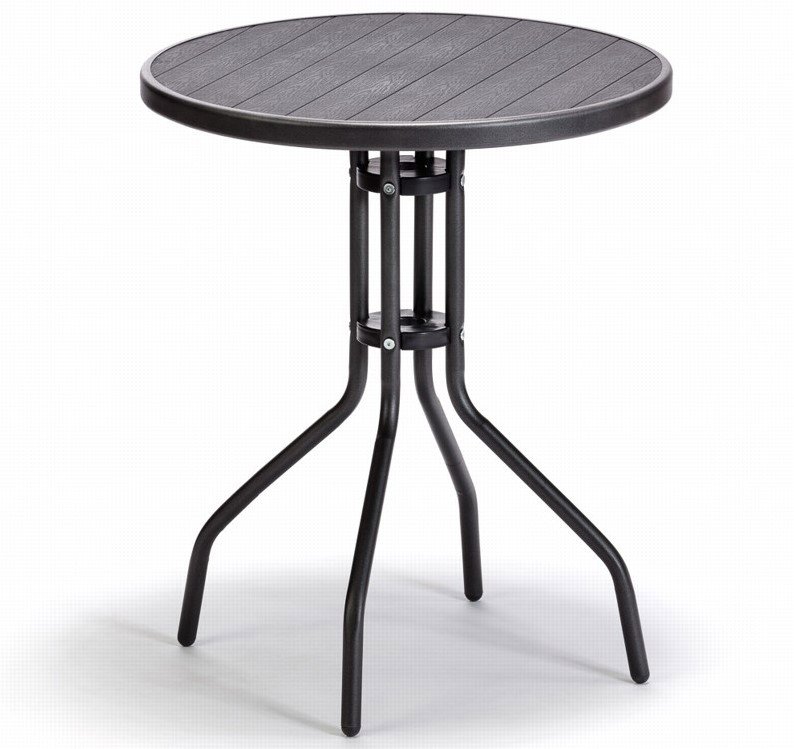 Záhradný stôl – materiál konštrukcie oceľ, materiál dosky plast, tvar kruh, priemer 60 cm, výška 73 cm Balkónový stôl NINA s oceľovou konštrukciou a okrúhlou doskou z umelého dreva artwood je určený predovšetkým na vonkajšie použitie na balkónoch alebo menších terasách a všade tam, kde ste limitovaní m