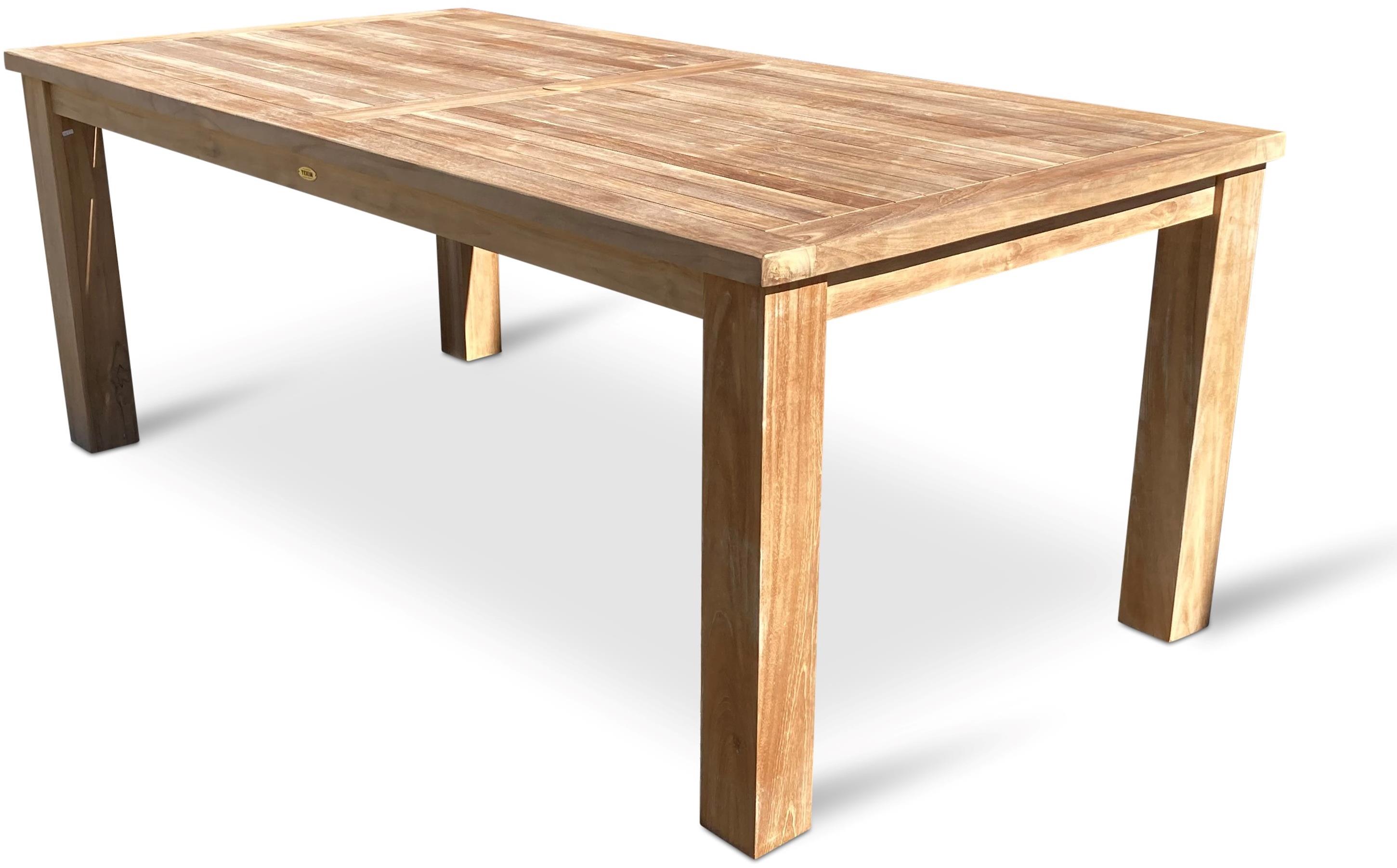 Záhradný stôl – s otvorom na slnečník, materiál konštrukcie drevo, materiál dosky drevo, druh dreva tík, tvar obdĺžnik, rozmery 200 × 100 × 75 cm (D׊×V) Záhradný stôl z teaku NOELA zo série Garden je vyrobený z kvalitnej exotickej dreviny teak. Ponúka vysokú odolnosť proti poveternostným vplyvom, vysoká tvrdosť dreva a nádherná kresba. Zo série Garde
