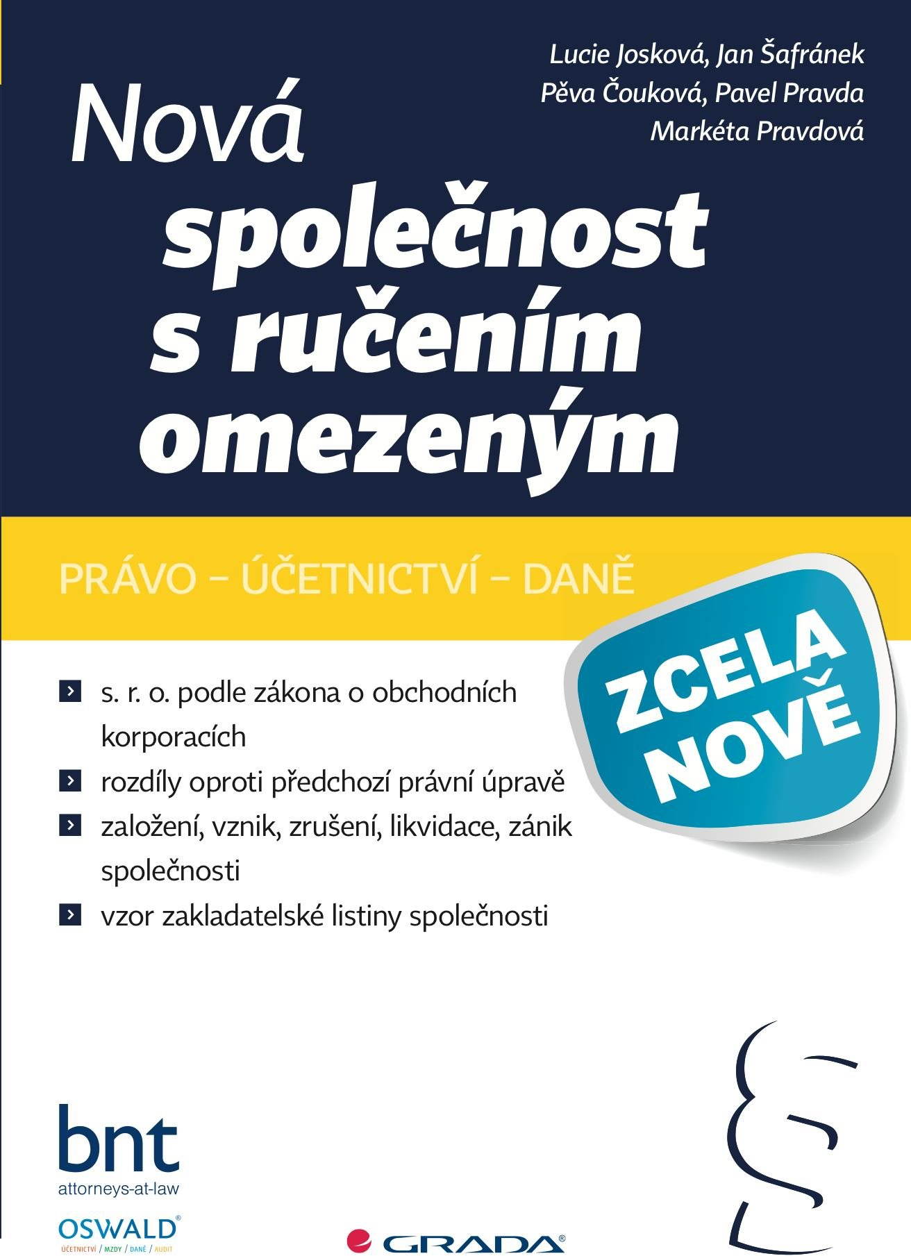 E-kniha – autor Lucie Josková, 208 strán, česky Od začátku roku 2014 jsou společnosti s ručením omezeným upraveny zcela nověV účinnost totiž vstoupily zbrusu nové předpisy — nový občanský zákoník a zákon o obchodních korporacích. Nová úprava přináš