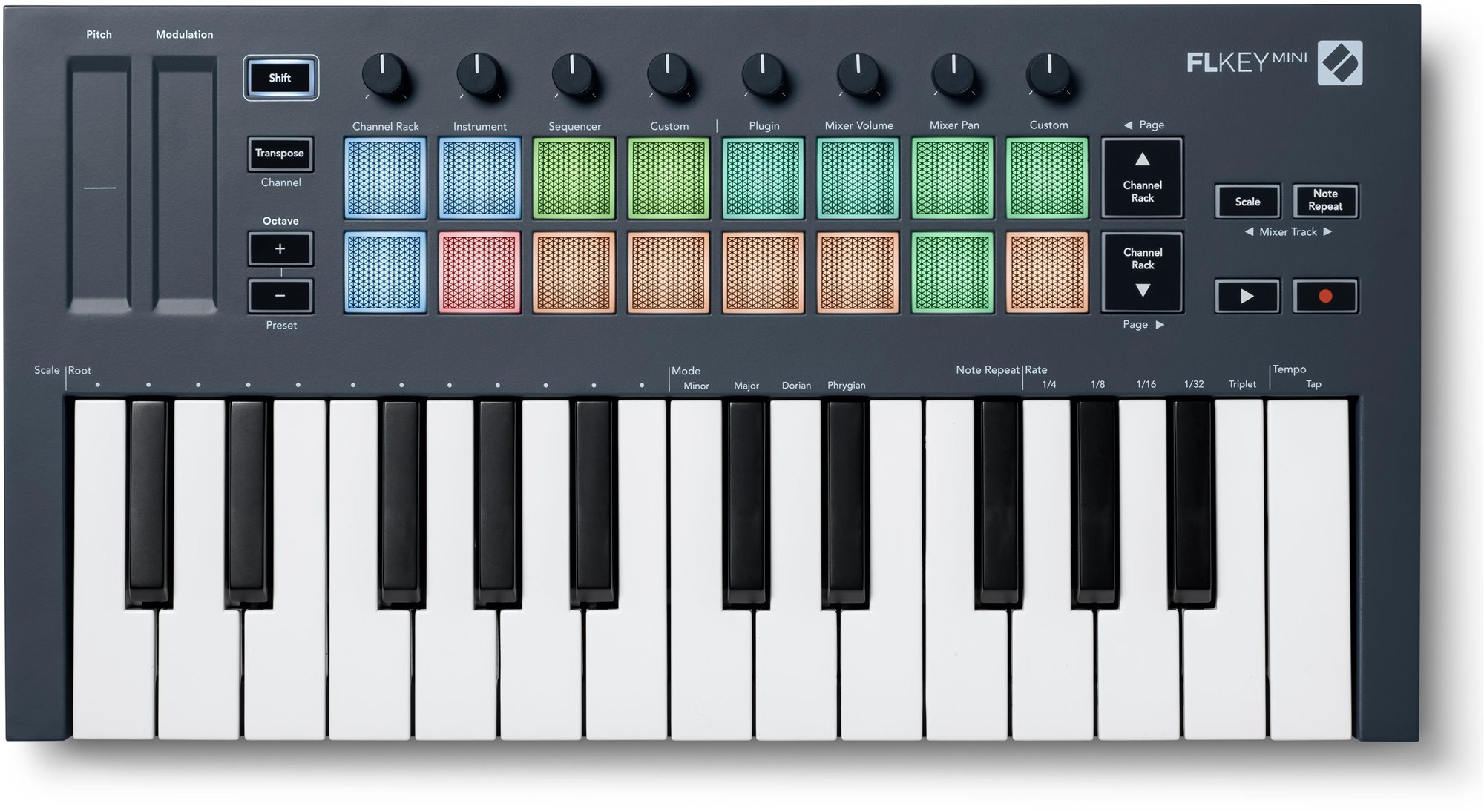 MIDI klávesy – 25 klávesov, mini klávesy, s dynamikou, lesklý povrch klávesov, DIN MIDI, DIN MIDI Out, vstup na pedál, hmotnosť 0,69 kg MIDI keyboard Novation má významné miesto v hudobnej produkcii, skladaní a živých vystúpeniach. Kompaktné rozmery 41 × 330 × 172 mm (V × Š × H) sú navrhnuté tak, aby bolo jednoduché prenášať ho a použ