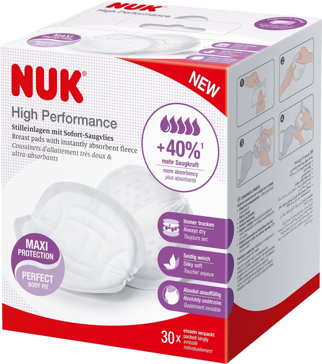 Vložky do podprsenky – jednorazové, anatomicky tvarované, vysoko absorpčné a priedušné, 30 kusov v balení Vysoko účinné prsné vložky NUK majú úplne novo vyvinutú fleecovú vrstvu s okamžitou absorpciou, obsahujúcou mikro guľôčky, ktoré majú o 40 % vyššiu absorpciu a spoľahlivo zadržujú tekutinu. Fleece so