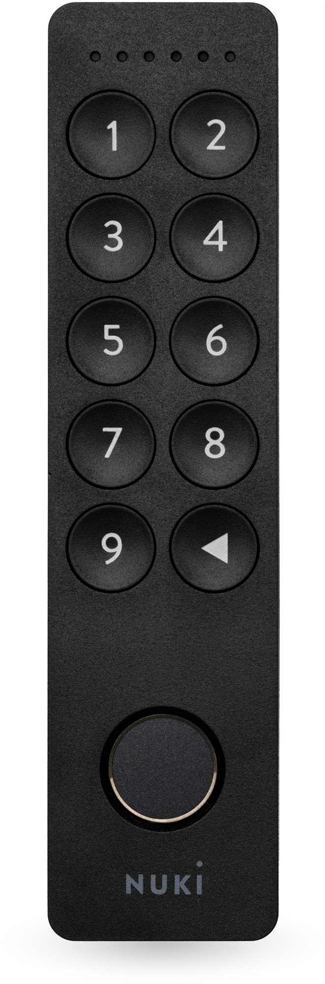 Prídavná klávesnica – umožní odomknutie dverí odtlačkom prsta či pomocou 6-miestneho prístupového kódu, až 20 odtlačkov prstov a až 200-rôznych prístupových kódov, Bluetooth, napájaná 4 AAA batériami Klávesnica Nuki Keypad 2.0 umožní dokonale ľahké odomknutie dverí odtlačkom prsta alebo pomocou 6-miestneho prístupového kódu. V aplikácii Nuki je možné prideliť a spravovať až 20 odtlačkov prstov a a