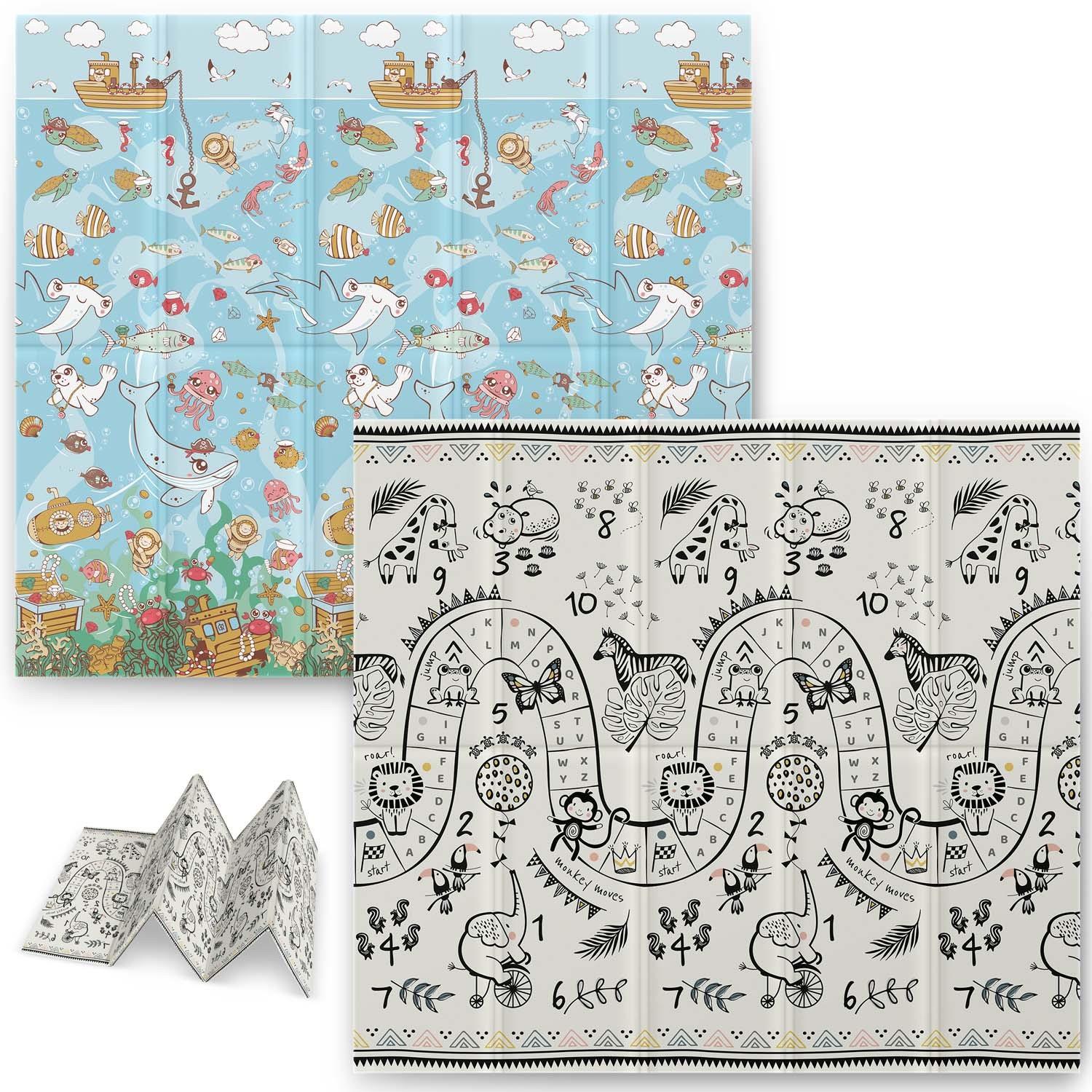 Hracia podložka – pre bábätká, penová, vodoodolná, protišmyková, netoxická, s tepelnou izoláciou, umývateľná, obojstranná, do izby a na von, motív zvieratká a príroda, vhodná od narodenia, rozmery 1 × 180 × 200 cm (V׊×D) Podložka…