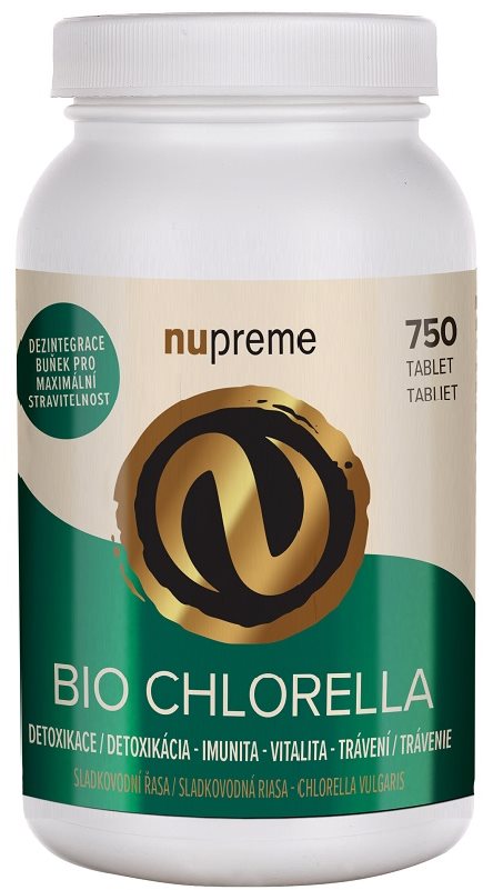 Chlorella – BIO prášok Chlorelly pyrenoidosa, 200 mg v 1 tablete, BIO certifikácia, vhodné pre vegánov, non-GMO, čistý produkt bez aditív, 750 tabliet Nupreme BIO Chlorella750 tablietBio Chlorella je prírodný zdroj vitamínov, minerálov, enzýmov, chlorofylu, aminokyselín, vlákniny a ďalších účinných látok. Ide o silný antioxidant s výraznými detoxika