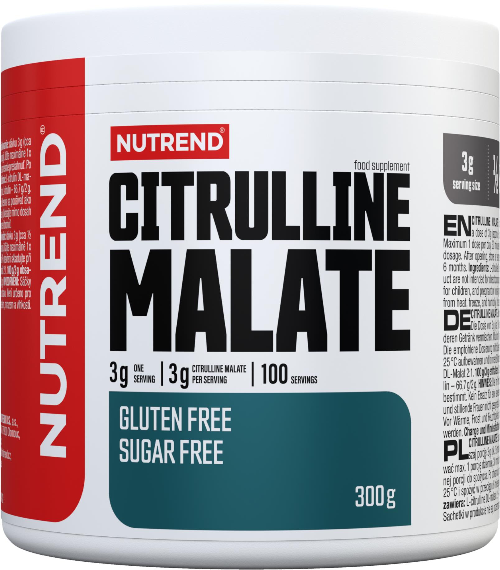 Aminokyseliny – citrulín, bez príchuti, balenie s hmotnosťou 300 g Nutrend Citrulline Malate. Bez príchute, 300 g. Aminokyseliny Nutrend Citrulline Malate v sypkej forme podporujú intenzívne prekrvenie svalov, čím uľahčujú prísun kyslíka aj živín do namáhaných svalových