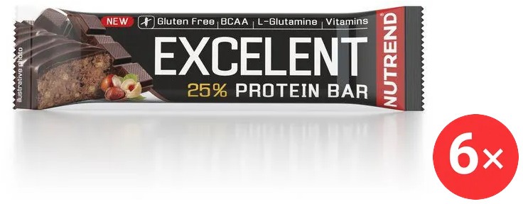 Proteínová tyčinka – 24,8 g bielkovín na 100 g, energetická hodnota na 100 g 437,33 kcal, príchuť čokoláda, hmotnosť 510 g Nutrend EXCELENT protein barČokoláda s orieškami, 6× 85 gProteínová tyčinka Nutrend EXCELENT protein bar vás nadchne svojou dokonale lahodnou chuťou. Ideálna je ako desiata pri športových aktivitách,