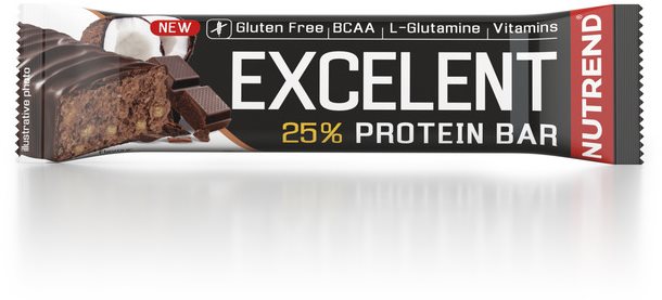 Proteínová tyčinka – 24,7 g bielkovín na 100 g, energetická hodnota na 100 g 434,75 kcal, príchuť kokos, hmotnosť 85 g NUTREND EXCELENT protein barčokoláda + kokos, 85 gProteínová tyčinka NUTREND EXCELENT protein bar predstavuje chutnú a praktickú alternatívu bežných sladkostí, ktorá vďaka vysokému obsahu bielkovín pr