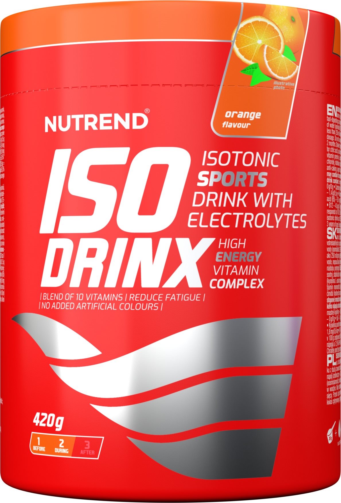 Športový nápoj – forma: prášok, energetická hodnota: 372 kcal Nutrend Isodrinxpomaranč, 420 gNutrend Isodrinx je profesionálny športový nápoj s elektrolytmi, ktorý zaistí dávku energie počas intenzívnej fyzickej aktivity. Je v sypkej forme na rozmiešanie vo vode
