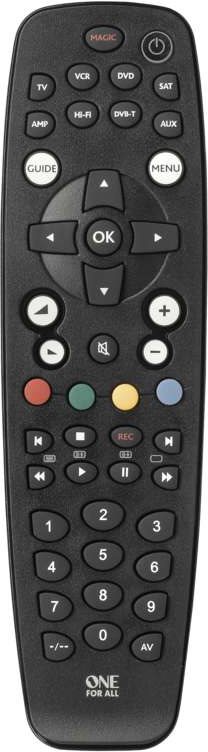Diaľkový ovládač na TV – univerzálny, kompatibilný s IPTV, DVD, Blu-ray, iPod Dock, domácim kinom, set-top boxom, dosah 0,015 m, infračervený prenos, programovateľné tlačidlá, na 3 AAA batérie (nie sú súčasťou balenia) Univerzálny diaľkový ovládač OFA z modelového radu Basic 8 slúži ako náhrada za originálny ovládač k vašej televízii, set-top boxu, IPTV, CD / DVD / Blu-ray prehrávačmi, zosilňovačmi, domácemu kinu al