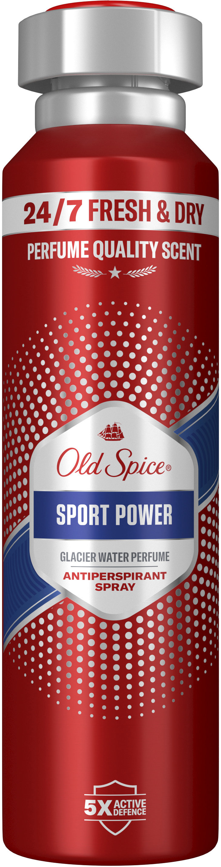 Antiperspirant – pánsky, v spreji, vhodný na normálnu pokožku, svieža vôňa, chladivý, dlhotrvajúci, na každodenné použitie, nezanecháva škvrny, proti zápachu, objem 150 ml Antiperspirant OLD SPICE Sport Power vám poskytne sviežosť počas 24 hodín. Je špeciálne vyvinutý pre potreby mužskej pokožky. Je ideálny na každodenné použitie. Dodáva pocit sucha a sviežosti. Disponu