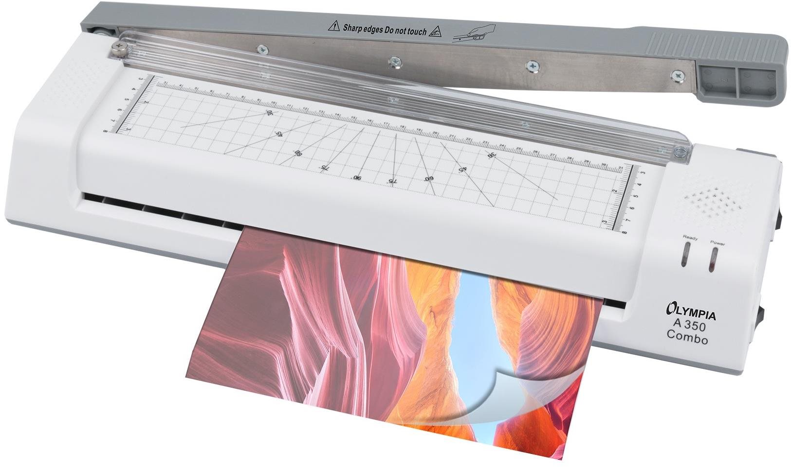 Laminovačka – na formát A3 až A7, pre maximálnu hrúbku dokumentov 0,5 mm, na dokumenty, doklady, vizitky a fotografie, šírka štrbiny 330 mm, pre fólie max. 2× 125 mikrónov, doba ohrevu 3 min, rezačka a systém proti zasekávaniu, rýchlosť 250 mm/min, rozmery 8 × 43,8 × 15,8 cm (V׊×H), hmotnosť 1,8 kg Laminovačka Olympia A 350 Combo sa stane praktickým pomocníkom v domácnostiach aj menších kanceláriách. Toto kompaktné kombinované zariadenie totiž ponúkne 5 dôležitých funkcií: laminovanie, rovné re