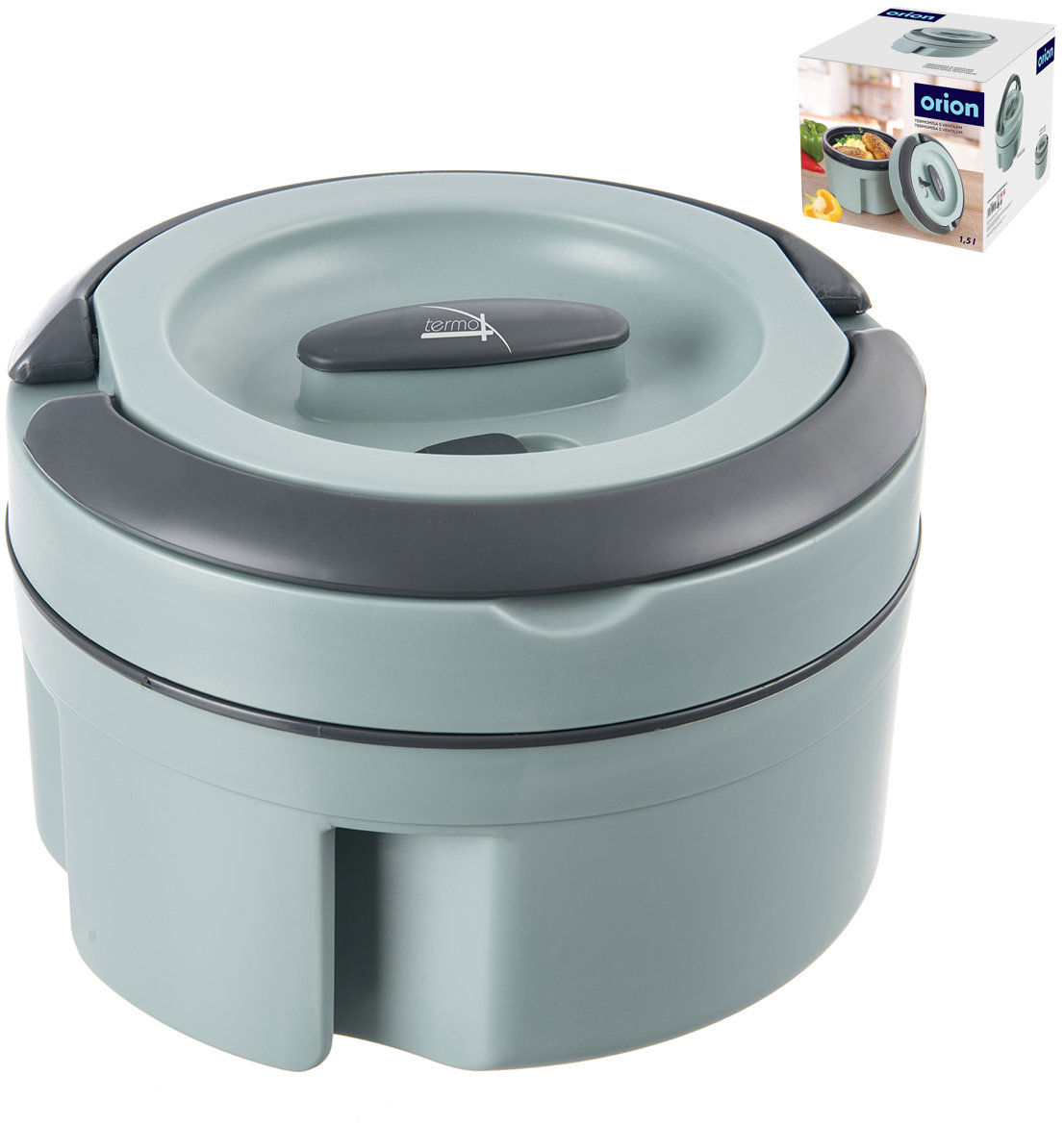 Termoska – na jedlo, s objemom 2400 ml, materiál nerez a plast, hmotnosť 0,922 kg Termoska Orion Termomisa kombinuje praktický plastový obal s antikorovým vnútrom, ktorý udrží pokrmy dlho teplé aj studené. Pevné uzavretie zaisťujú štyri klipy na silikónovom tesnení, zatiaľ čo skláp