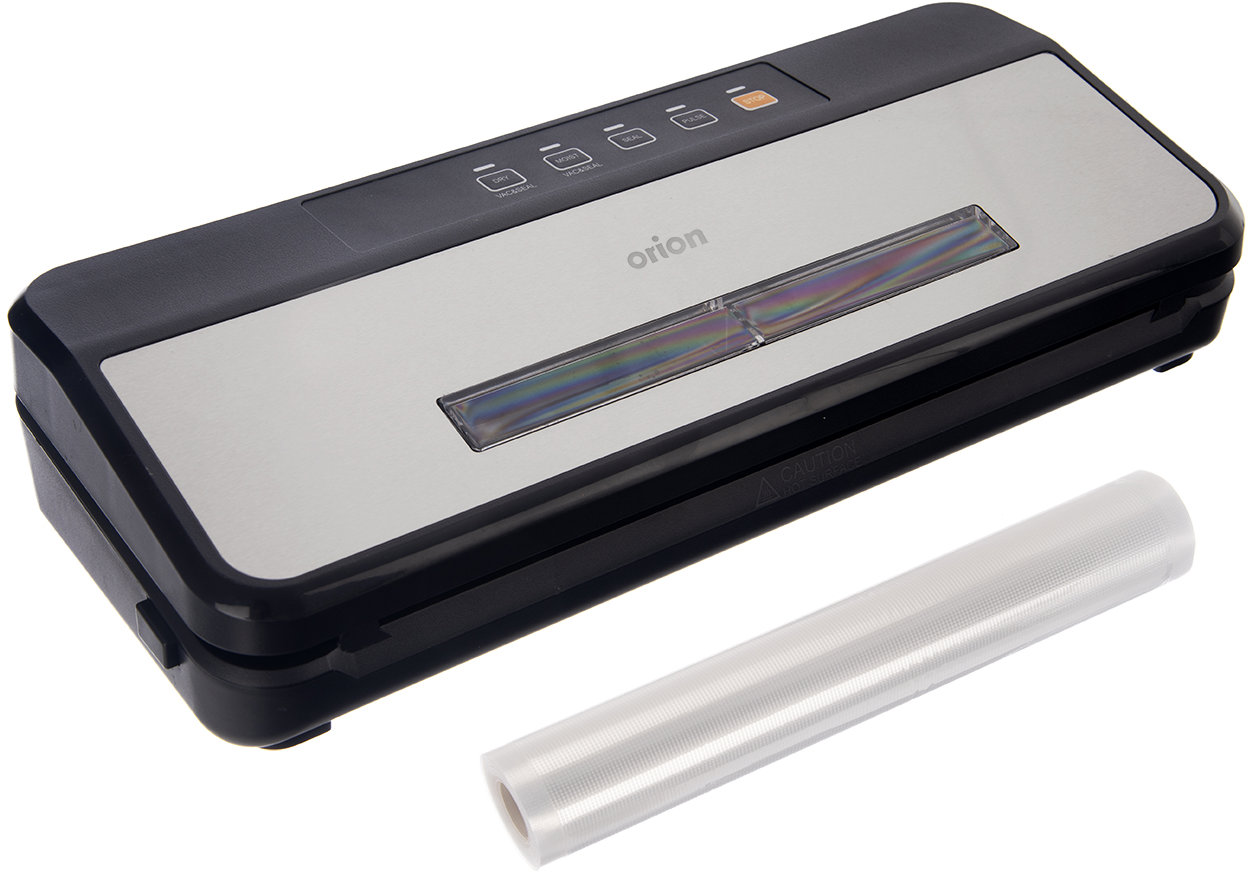 Vákuová zváračka fólií – elektrická, stolová vákuovačka-zváračka, poistka proti prehriatiu, indikácia LED, vhodná na sous-vide, suché aj mokré potraviny, napr. marinované mäso, zeleninu, ovocie, pečivo a pod., súčasťou vstavaná rezačka Vákuová zváračka fólií na potraviny Orion je navrhnutá na vákuovanie suchých aj vlhkých potravín. Vákuovačka disponuje niekoľkými režimami použitia. Môžete nechať potraviny automaticky vákuovať a uzav