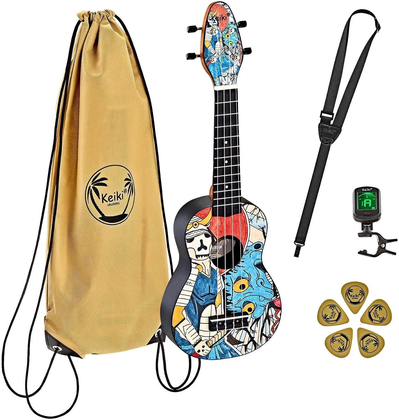 Ukulele – sopránové, 12 pražcov, vrstvený korpus, povrchová úprava mat, predná doska agathis, krk okoumé, hmatník špeciálny plast, menzúra 364 mm, balenie obsahuje ladičku, obal a popruh Malé kompaktné telo a 4 struny, to je ukulele Ortega K2-SR. Vzhľadom na jeho veľkosť môžu na ňom hrať nielen dospelí, ale aj deti. Je skladné a jednoducho ho zbalíte na cesty, a tak vám bude výborným