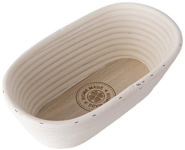 Ošatka na chlieb – ratanová, prútená, stohovateľná, rozmery 9 × 13 × 26 cm (V׊×D), béžová farba Ošatka ORION s nápisem HOME MADE představuje ideálního pomocníka na přípravu domácího chleba. Využít ji můžete na kynutí těsta, uskladnění chleba, stejně jako k servírování pečiva či jako