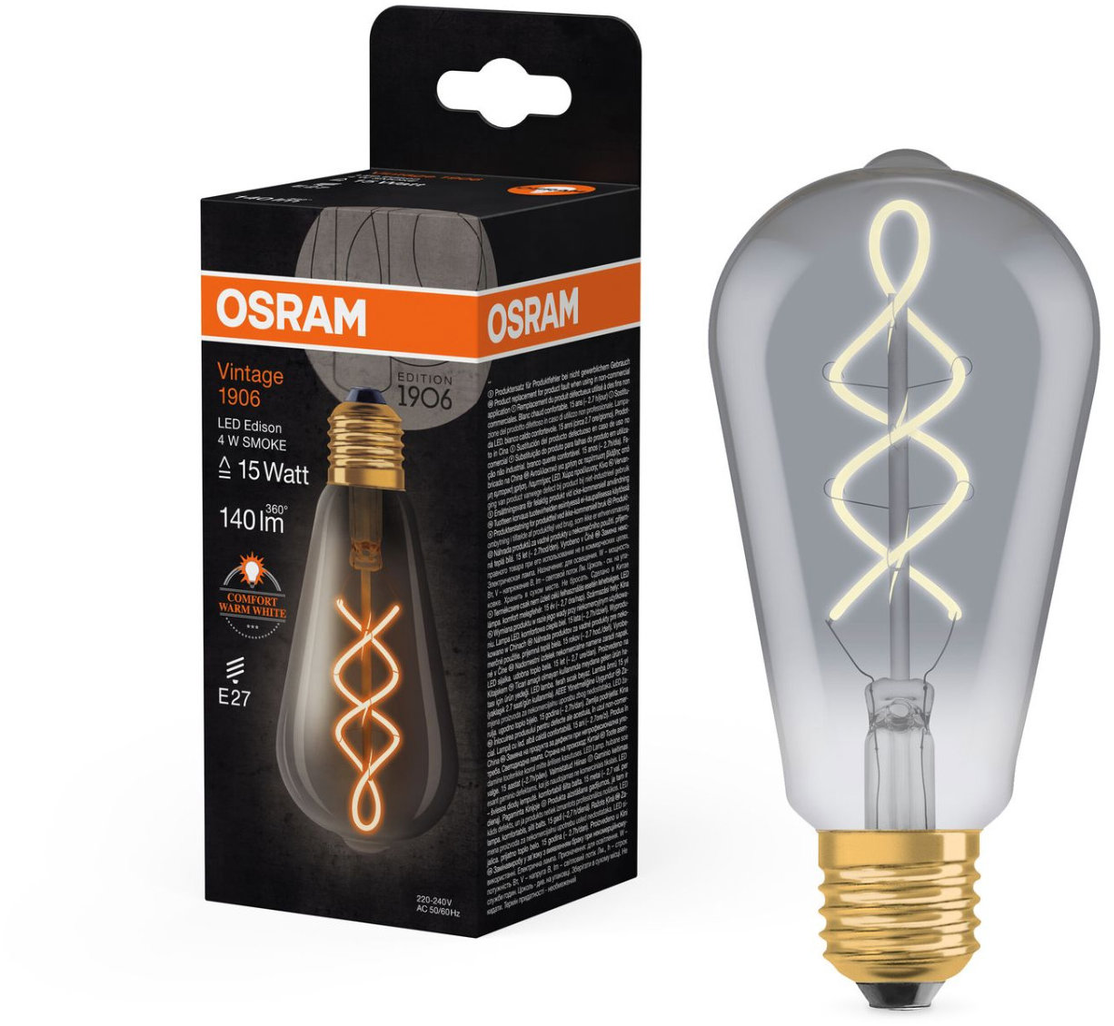 22,10 €OSRAM špirálovitá LED žiarovka E27 4 W VINTAGE 1906, teplá biela
