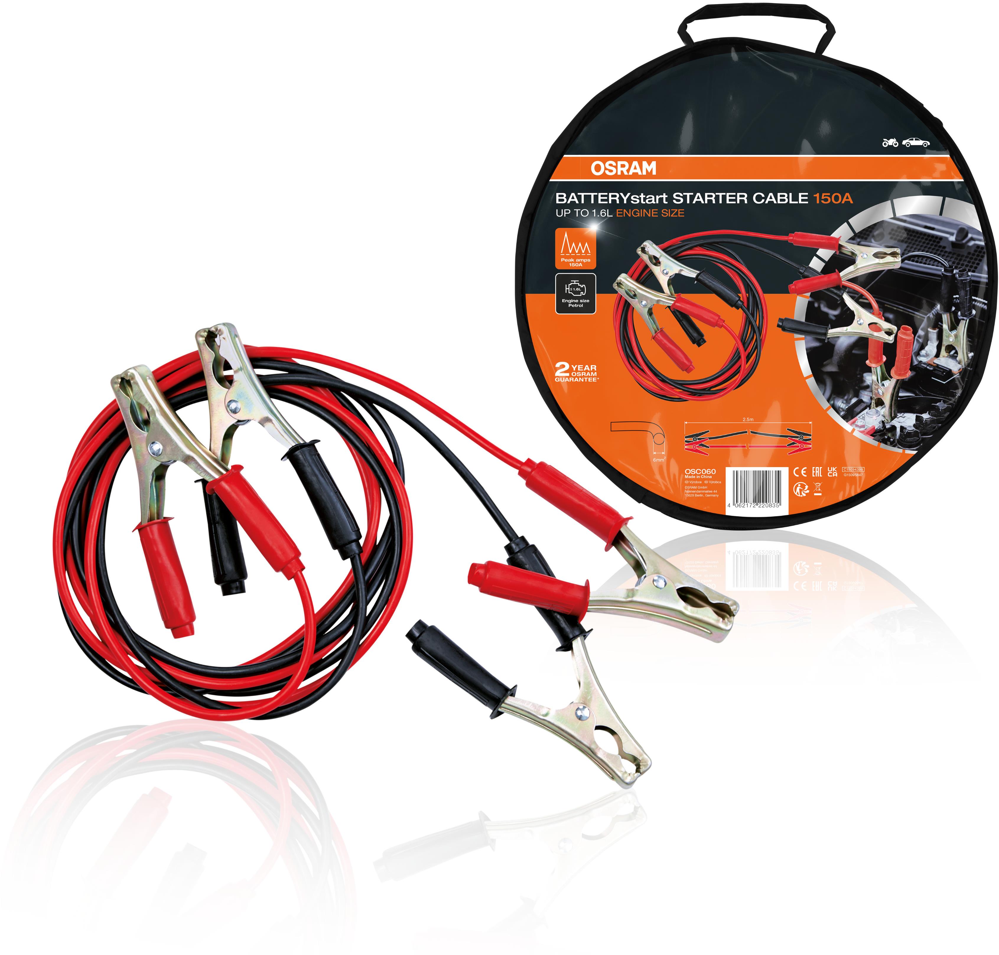 Štartovacie káble – vodiče z pomedeného hliníka, prierez 6 mm2, svorky bez izolácie, s pružinami, dĺžka 2,5 m, max. prúdové zaťaženie 150 A, obal v balení Hoci štartovacie káble nepatria medzi povinnú výbavu vozidla, sa môžu kedykoľvek hodiť. Káble na štartovanie OSRAM sú dlhé 2,5 m, tak ich využijete aj v miestach so zlým prístupom. Správne vedenie ele